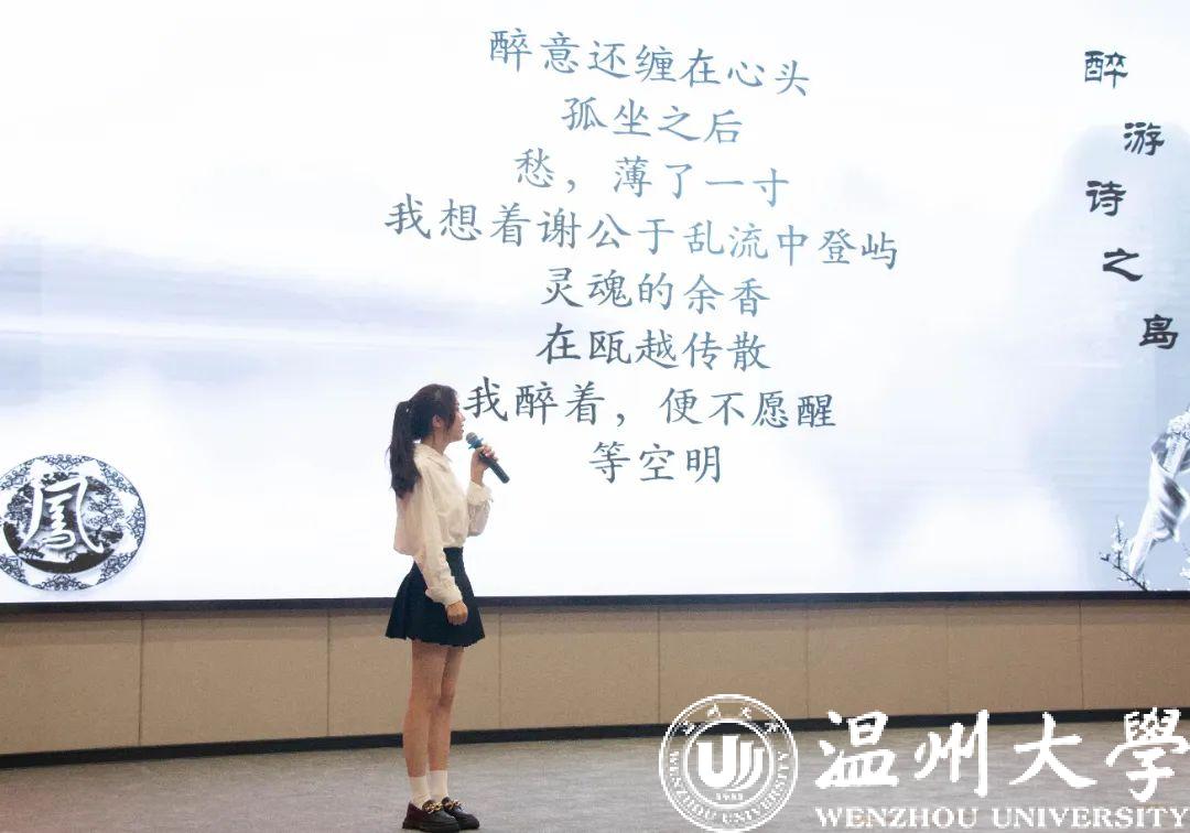 活动现场,温大瓯玉汉服社学员还表演了精彩美妙的汉服走秀,和着优美的诗词,现场观众邂逅了一场跨越时空的视觉盛宴,沉醉于国风的独特魅力中。