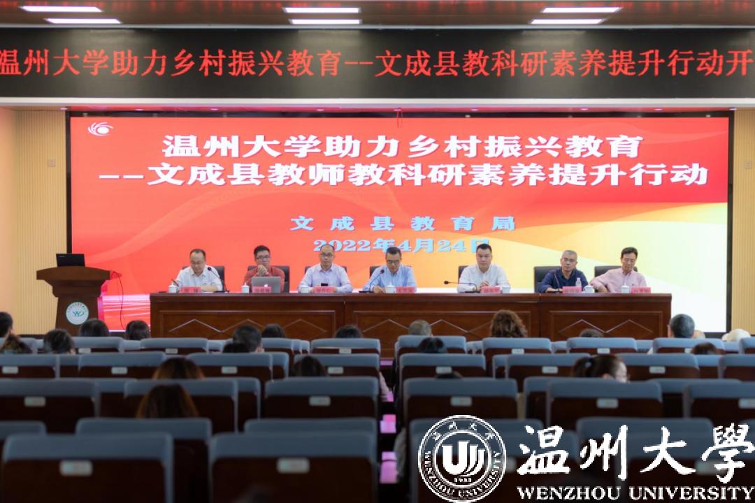 为提升教师科研素养,推进教育科研工作,为文成课堂变革、教育质量提升提供智力支持,根据《beat365官方网站 文成县人民政府助力乡村振兴教育帮扶与合作框架协议书》精神,4月24日,beat365官方网站助力乡村振兴教育——文成县教师教科研素养提升行动开幕式举行。beat365官方网站教育发展研究院相关负责人、专家团成员,文成县教育局相关负责人,年度文成县市级论文送审作者、各校教科研骨干等参加仪式。