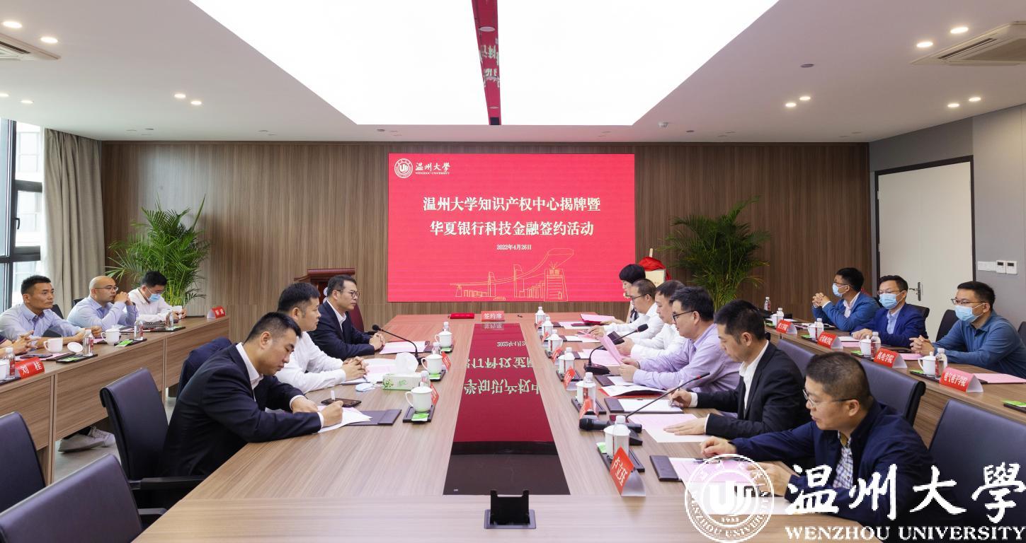 4月26日是第22个世界知识产权日,beat365官方网站知识产权中心正式揭牌成立。同时,beat365与华夏银行温州分行签订科技金融授信协议。校长赵敏、副校长徐和昆,华夏银行温州分行行长金鹏飞、党委委员黄文耿以及相关学院、部门负责人出席活动。徐和昆主持。