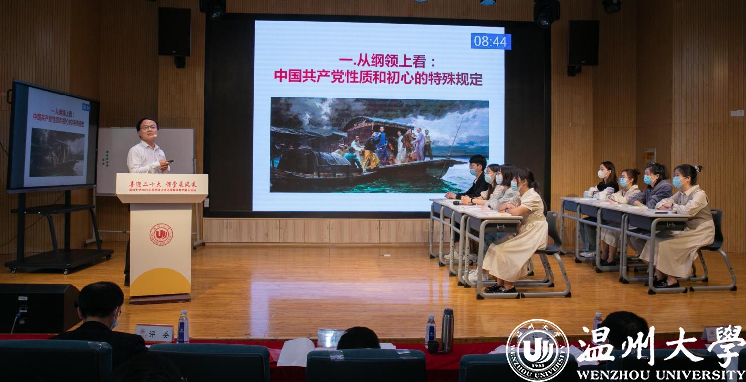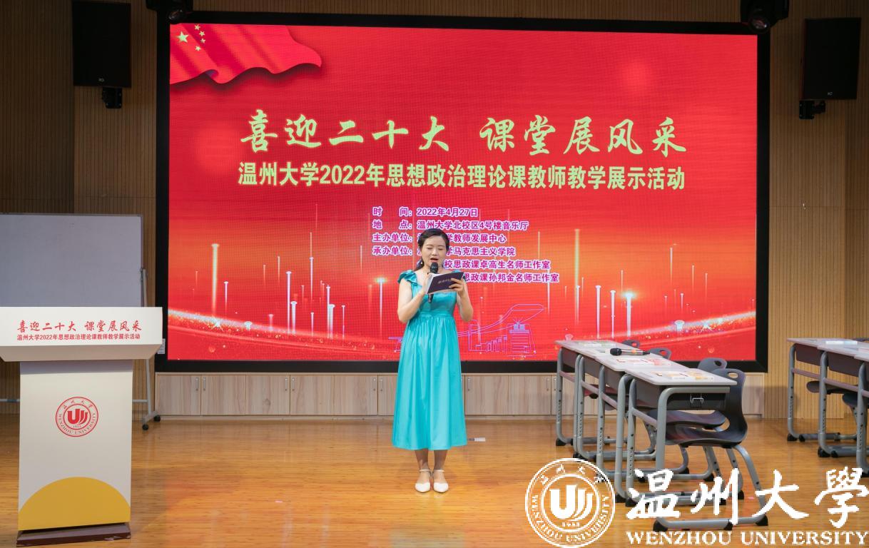 4月27日,喜迎二十大 课堂展风采——beat365官方网站2022年思想政治理论课教师教学展示活动举行。本次活动由学校教师教学发展中心主办,马克思主义学院、全国高校思政课卓高生名师工作室、省高校思政课孙邦金名师工作室承办。副校长王舜,校党委委员、宣传部部长潘玉驹,教发中心,教务处负责人等出席活动。浙江省高校思政课教指委委员、温州医科大学马克思主义学院院长崔华前等校内外专家担任评委。