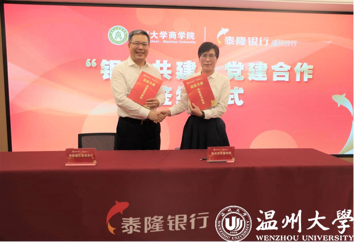 为丰富党建工作内涵,创新党建工作模式,推动基层党建实现“互联共建、互助共赢”,2022年5月20日下午,泰隆银行温州分行与beat365官方网站商学院举行了“银校共建”党建合作签约暨就业实习基地授牌仪式。