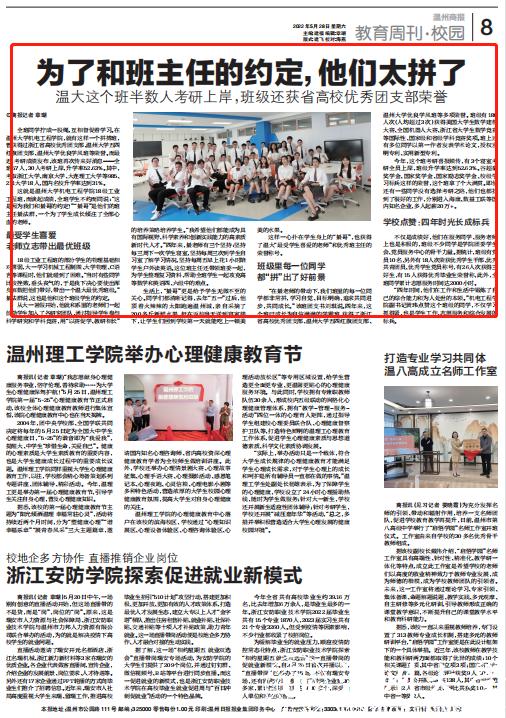 全班同学拧成一股绳,互相督促着学习。在beat365官方网站机电工程学院,就有这样一个拼搏班,曾获得过浙江省高校优秀团支部、beat365官方网站五四红旗团支部、beat365官方网站优良学风班等荣誉。而最近,考研成绩发布,该班再次传来好消息——全班57人,30人考研上岸,升学率52.63%。其中,考取浙江大学、南京大学、大连理工大学等985、211大学18人,国内名校升学率达到31%。
