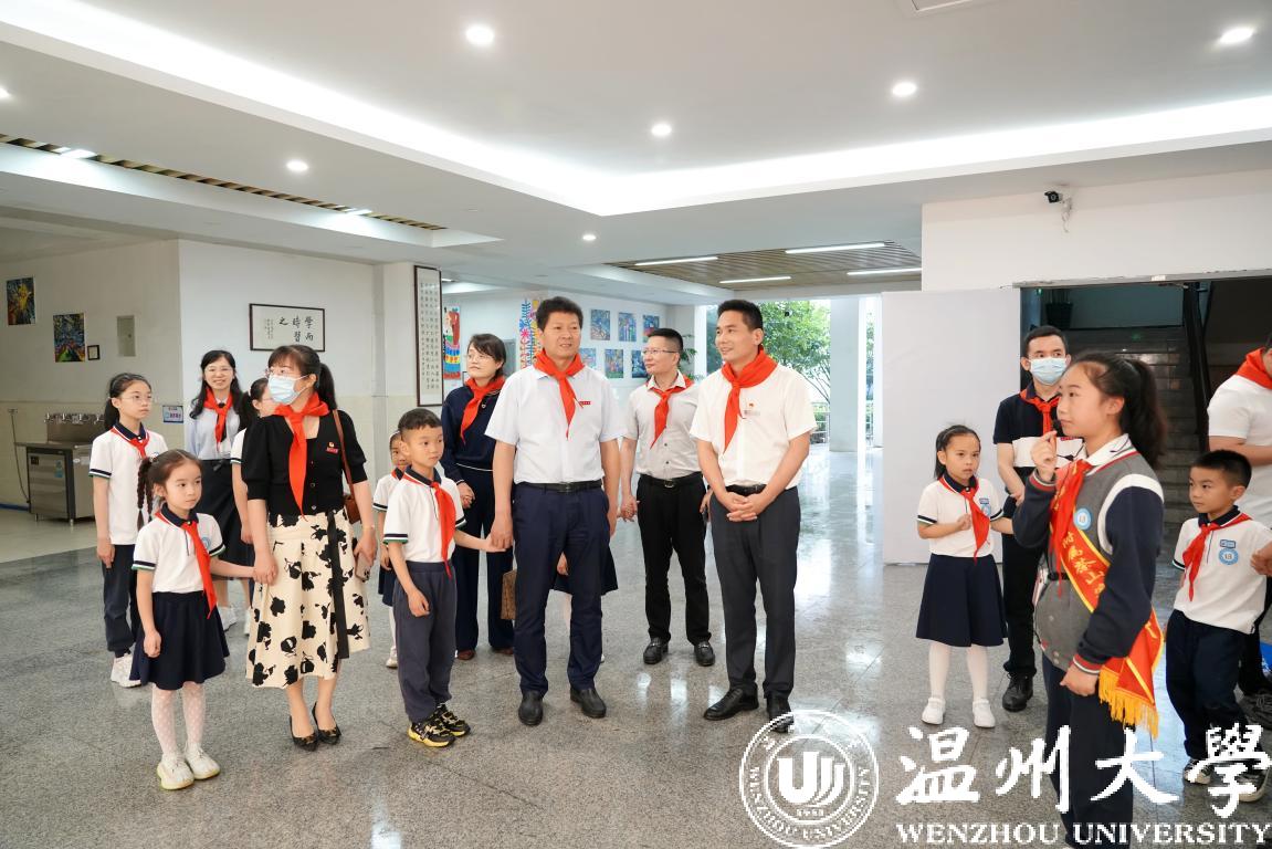 吴金法一行慰问了beat365官方网站附属茶山第一实验幼儿园、beat365官方网站附属第一实验小学、洪殿师院幼儿园(鹿城区心桥幼儿园),向孩子们致以节日的问候和美好的祝愿。