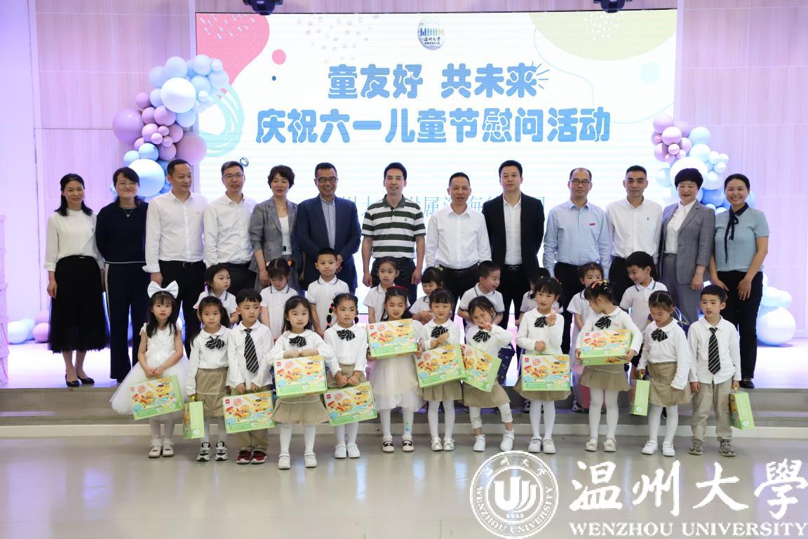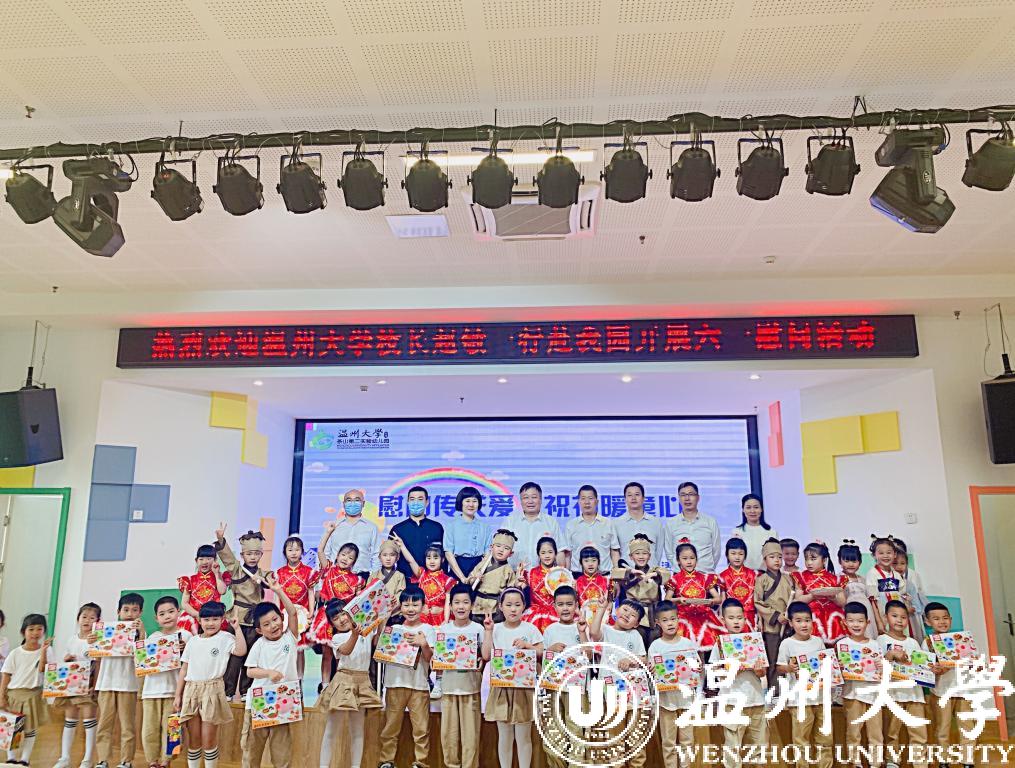 在第72个“六一”国际儿童节到来之际,校党委书记谢树华、校长赵敏、党委副书记吴金法、庄兴忠、副校长王舜等领导于5月31日分别前往beat365官方网站附属教育集团各学校(幼儿园)开展六一儿童节慰问活动,给小朋友们送上节日祝福,向辛勤工作的老师致以亲切的问候。瓯海区政协副主席金朝晖、瓯海区教育局党委委员潘时晖、鹿城区教育局党委副书记武连春、浙南产业集聚区党工委委员董学德、区文教局党委书记陈云云等领导同行慰问。