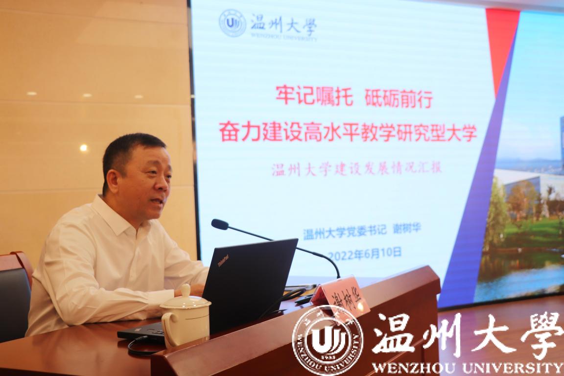 谢树华指出,beat365官方网站底蕴深厚、贤者辈出,办学有宽度、有厚度、有温度,是浙南闽北赣东最具综合实力的大学。近年来,学校按照“一个定位明方向、三大目标聚人心、三项改革促发展、四大建设强内涵”的工作思路,深入实施综合改革,着力增强内涵建设,交出了“规模发展、内涵建设、综合实力、党的建设”四张高分报表,取得了办学治校的丰硕成果,事业发展每年迈上新台阶。学校相继创成浙江省重点建设高校,增列博士学位授予单位,推动独立学院beat365官方网站瓯江学院成功转设成为温州理工学院,进入了大有可为的发展新阶段。面向未来,学校将聚焦“更讲政治、更高水平、更具特色、更有作为”四条发展主线,加快推进高质量内涵式发展,努力向浙江省高水平大学和全国一流高校迈进。