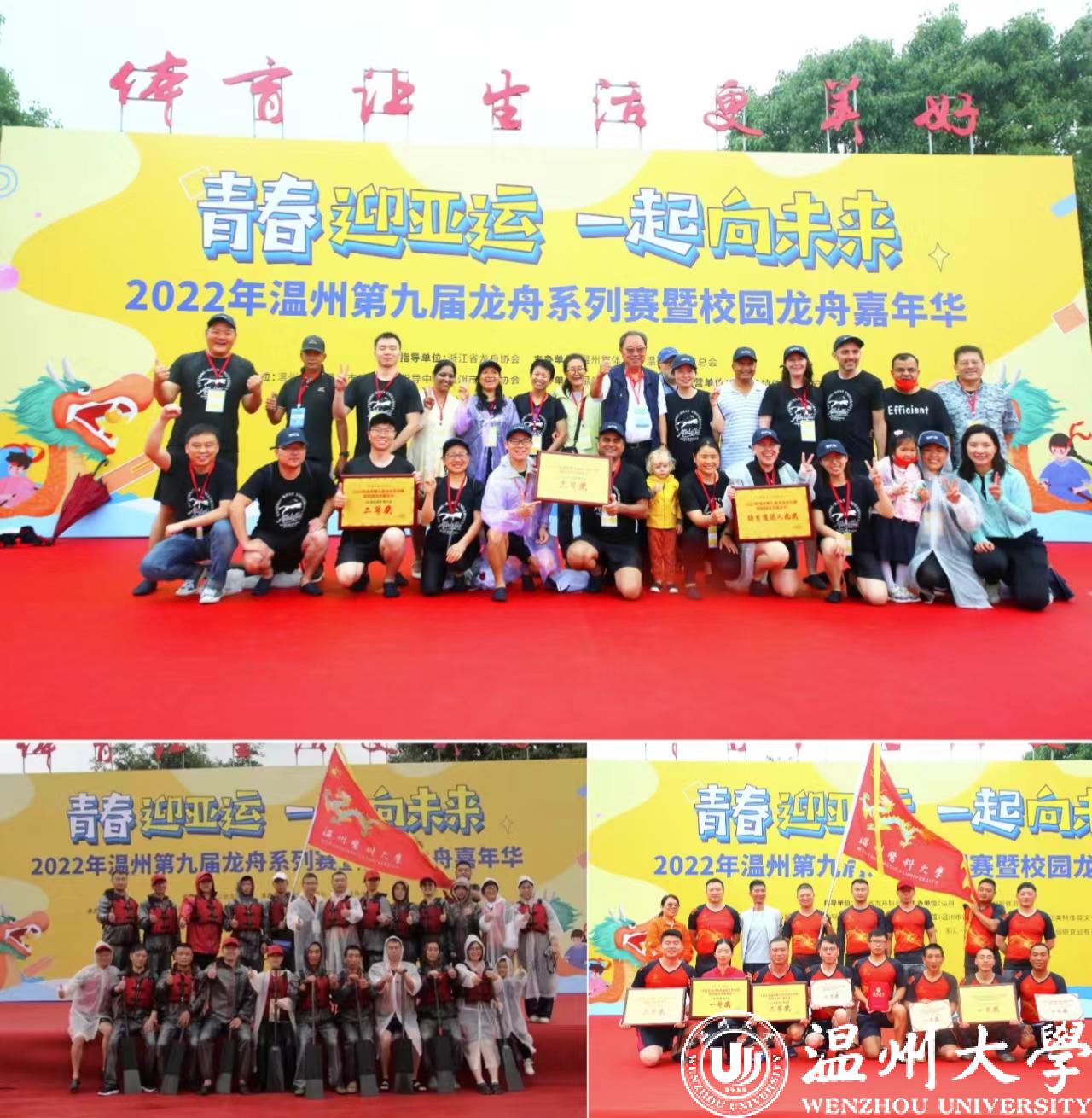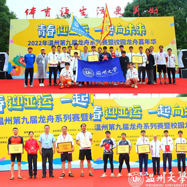 当天上午进行12人龙舟100米直道赛,经过激烈角逐,温大体健学院队获得教工组一等奖;温大一队、温大二队获得青少年组一等奖。