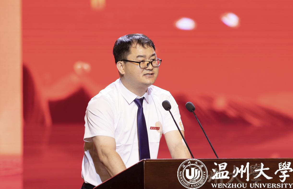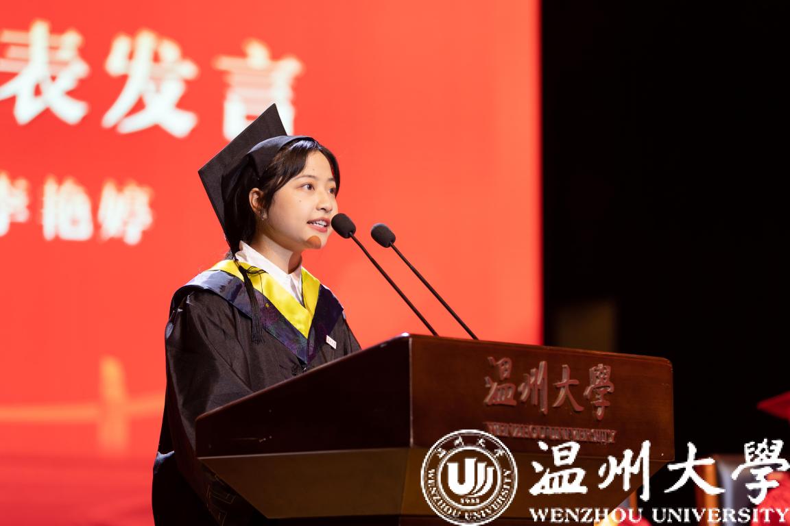 研究生代表、马克思主义学院的张剑宇同学分享了自己研究生期间“为农而作、为民发声”的科研报国理想与实践,并表达了对母校的感激之情:“接过‘求学问是,敢为人先’的火炬,背起‘光大国族,造福人群’的行囊,我们将走向城镇乡野、奔赴五湖四海。谢谢您,我的温大!”