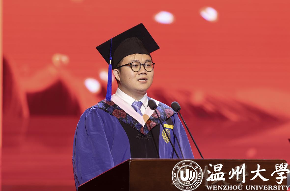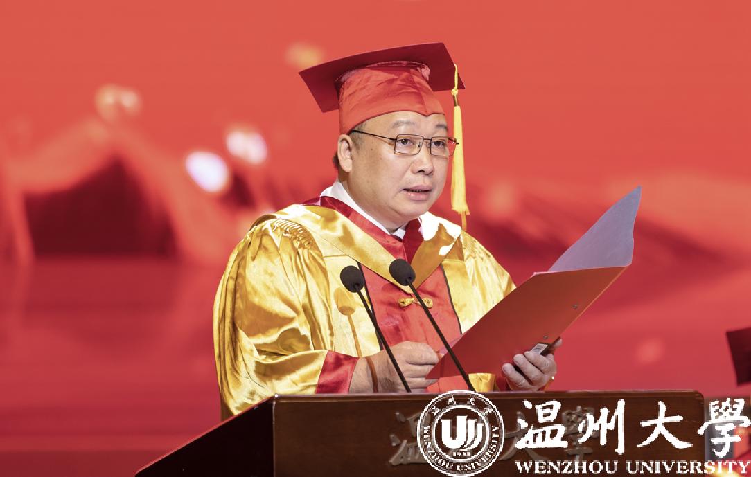 俄罗斯工程院外籍院士、校长赵敏致辞。“几年求学时光如白驹过隙,美好的记忆化成点滴永寄心间”,赵敏校长为同学们与beat365官方网站一同成长感到由衷的喜悦、骄傲和自豪。“我们一起见证温大迈入浙江省重点建设高校,合力推动温大成功增列为博士学位授予单位,共同谱写温大高质量内涵式发展新篇章。温大见证了你们最美好的青春时光与蜕变成长。”