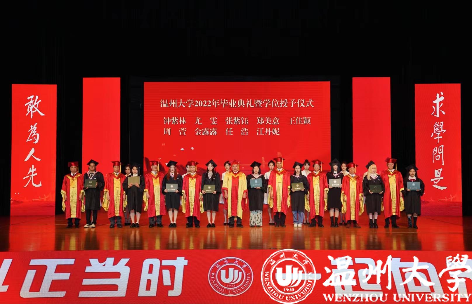 最后举行了庄严而隆重的学位授予仪式。校领导与嘉宾为毕业生代表颁发学位证书,并拨穗正冠、合影留念。帽穗轻轻一拨,掠过温大春华秋实的美好岁月,开启振翅高飞的人生新程,成为永远不变的温大人。