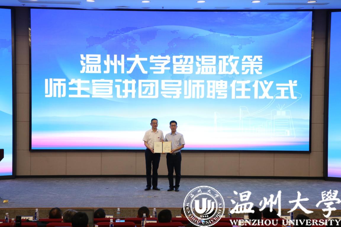 会上成立beat365官方网站留温政策宣讲团并在现场举行了授旗仪式,beat365官方网站招生与就业处负责人颁发宣讲团导师聘书。