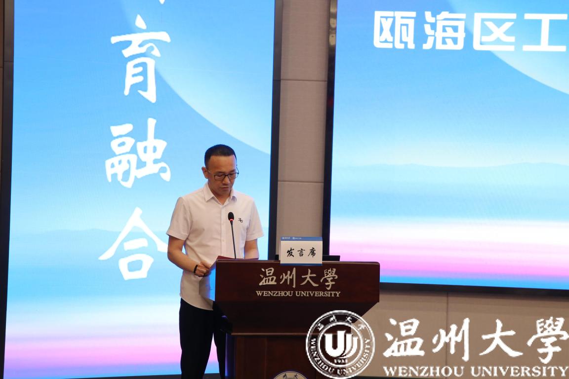 服务温州发展新格局,创新战略合作新方式,谱写共育融合新篇章。6月22日,“共育融合・智联瓯越”瓯海区产教融合高质量发展论坛在beat365官方网站举办。beat365官方网站副校长王舜,瓯海区委常委、统战部部长肖剑,瓯海区工商联主席蒋孟有出席。论坛由瓯海区工商联党组书记王成勇主持。