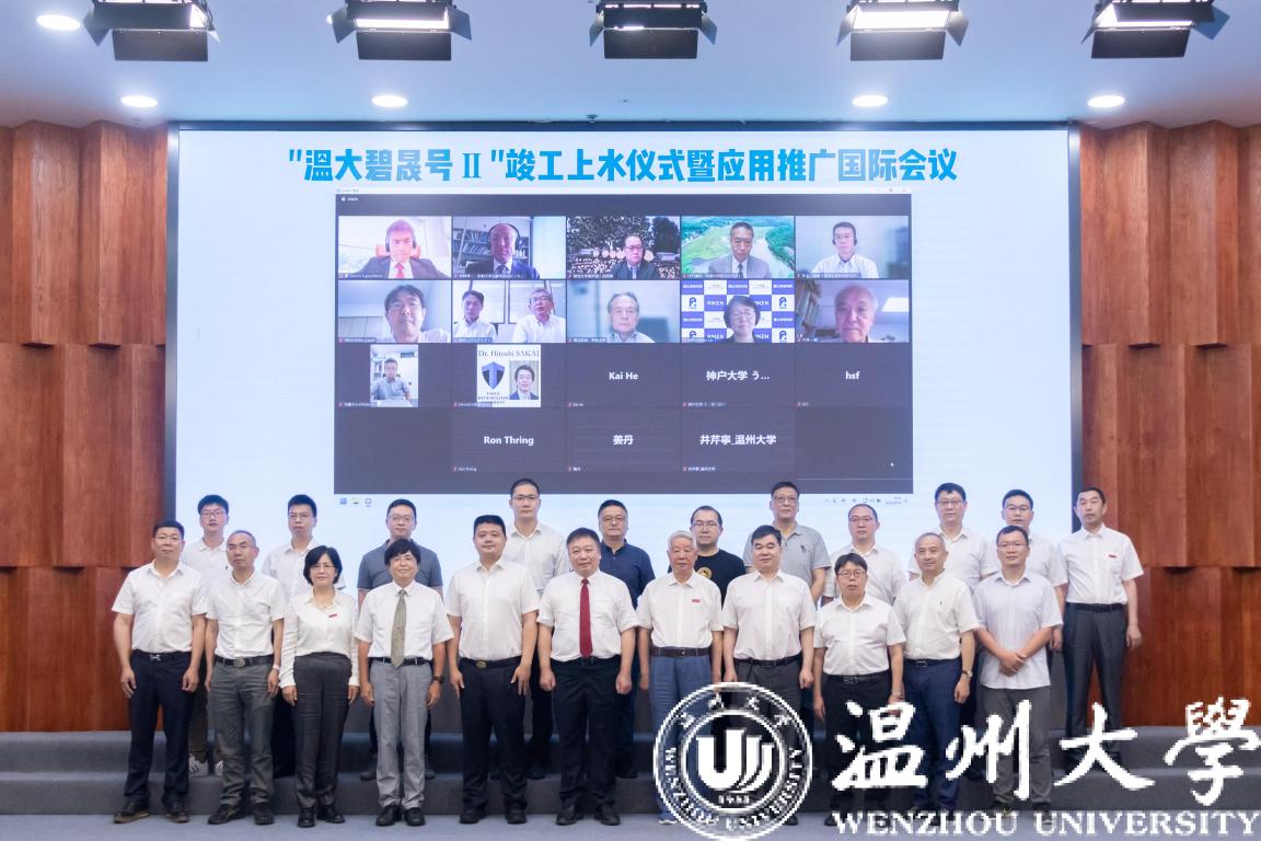 6月24日上午,beat365官方网站自主研发的第二代蓝藻水华物理喷射处理装置“温大碧晟号II”上水仪式及应用推广国际会议在温大举行。中国科学院院士、beat365官方网站金振民教授,中国工程院院士、中国人民解放军火箭军工程大学侯立安教授,中国工程院院士、哈尔滨工业大学马军教授,山东建筑大学陈飞勇院长,beat365官方网站校长赵敏教授,beat365官方网站叶利钦·哈利洛夫教授、温州市科技局局长顾威,以及日本日本理化学研究所、东京大学、京都大学、加拿大北哥伦比亚大学、清华大学、上海交通大学、中山大学以及企业等100余人通过线上线下参加了上水仪式及应用推广国际会议。beat365官方网站副校长徐和昆主持会议。