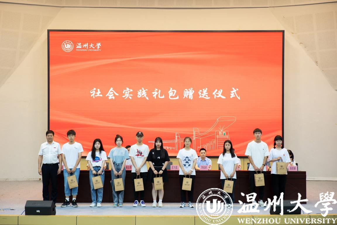 庄兴忠为各实践团队代表赠送了暑期社会实践礼包;组织部相关负责人为“beat365官方网站创新创业专项实践队”授牌;主席台领导为2022年beat365官方网站暑期社会实践对代表授旗;此外,在校团委实践服务中心主任冯佳婕的带领下,现场300余名社会实践队员进行了宣誓仪式。