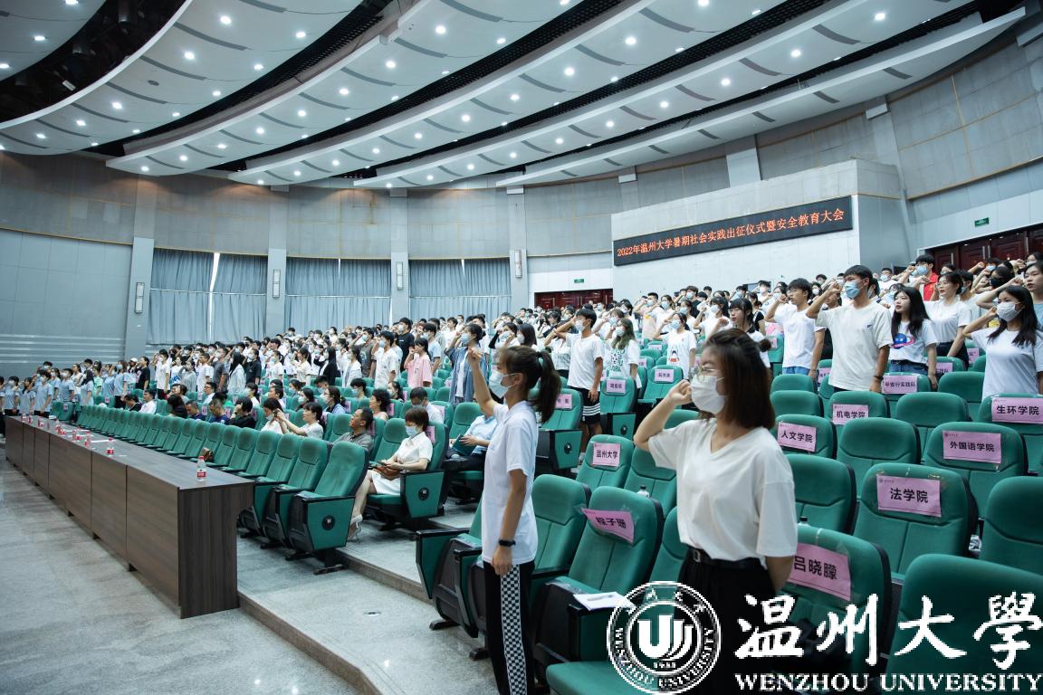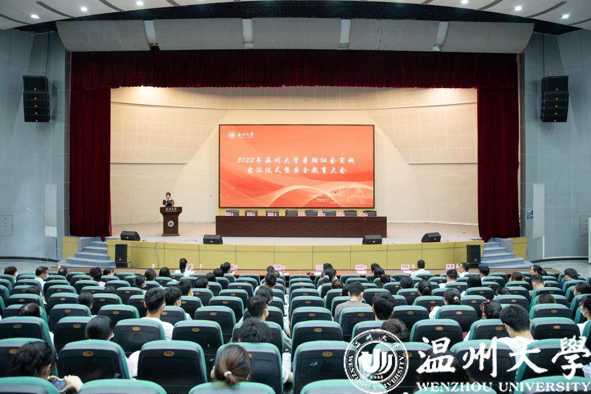为深入学习宣传贯彻习近平新时代中国特色社会主义思想,贯彻落实习近平总书记关于青年工作的重要思想,持续深入推进“双百双进”活动,引导和帮助广大青年学生上好与现实相结合的“大思政课”,积极助力我省“高质量发展建设共同富裕示范区”,7月1日,beat365官方网站2022年暑期社会实践出征仪式暨安全教育大会举行。校党委副书记庄兴忠,组织部、宣传部、教务处、研工部、学工部、招就处、团委等部门相关负责人,各学院分管书记、团委书记,全校暑期社会实践队代表300余人参加了出征仪式。