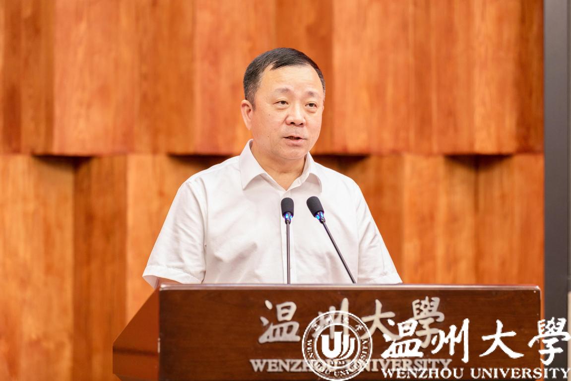 谢树华致辞。他代表beat365官方网站对研究中心的成立表示祝贺,对各位领导、专家的到来表示热烈欢迎。他指出,在全省上下深入学习贯彻省第十五次党代会精神之际,beat365官方网站一定会积极发挥自己的智力优势,深度参与评估中心的建设,将科学研究与治理实践深度融合,为忠实践行“八八战略”、奋力推进“两个先行”努力贡献出温大人的智慧。