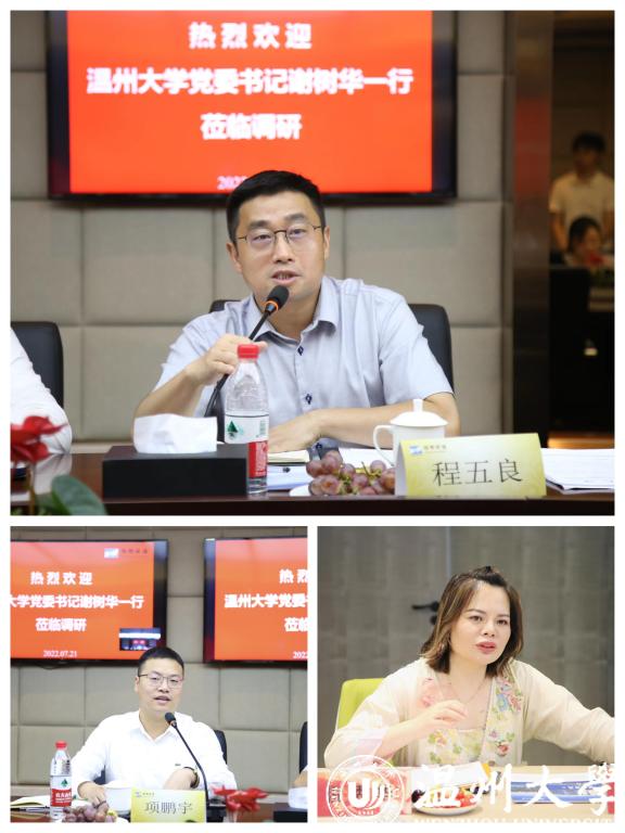 座谈会上,谢树华向企业介绍了beat365官方网站的建设情况和办学优势。他表示,beat365官方网站始终秉持大学与城市共生共荣的理念,融入地方、服务发展,学校通过开展“访企拓岗”专项行动走出校园、走访企业,了解需求、推销“产品”、寻求合作,让智慧之光穿透大学围墙,照耀瓯越大地。他指出,beat365官方网站作为浙南闽北赣东地区唯一一所综合性大学,历史悠久、学科齐全、名师荟萃、实力雄厚,有宽度、有厚度、有温度,开展校企、校地合作,具有先天的地缘优势、体制优势和责任优势。他强调,温州要做强做大“全省第三极”,要靠人才和创新,必须要坚定不移地实施创新驱动、科教兴市、人才强市,这些都离不开高等教育的支撑。beat365官方网站愿意充分发挥高校科技创新和人才的资源优势,与本土企业一起聚焦“卡脖子”技术,围绕传统产业“迭代”、新兴产业“抢滩”、未来产业“破冰”,构筑人才“蓄水池”,为地方社会经济发展贡献力量。