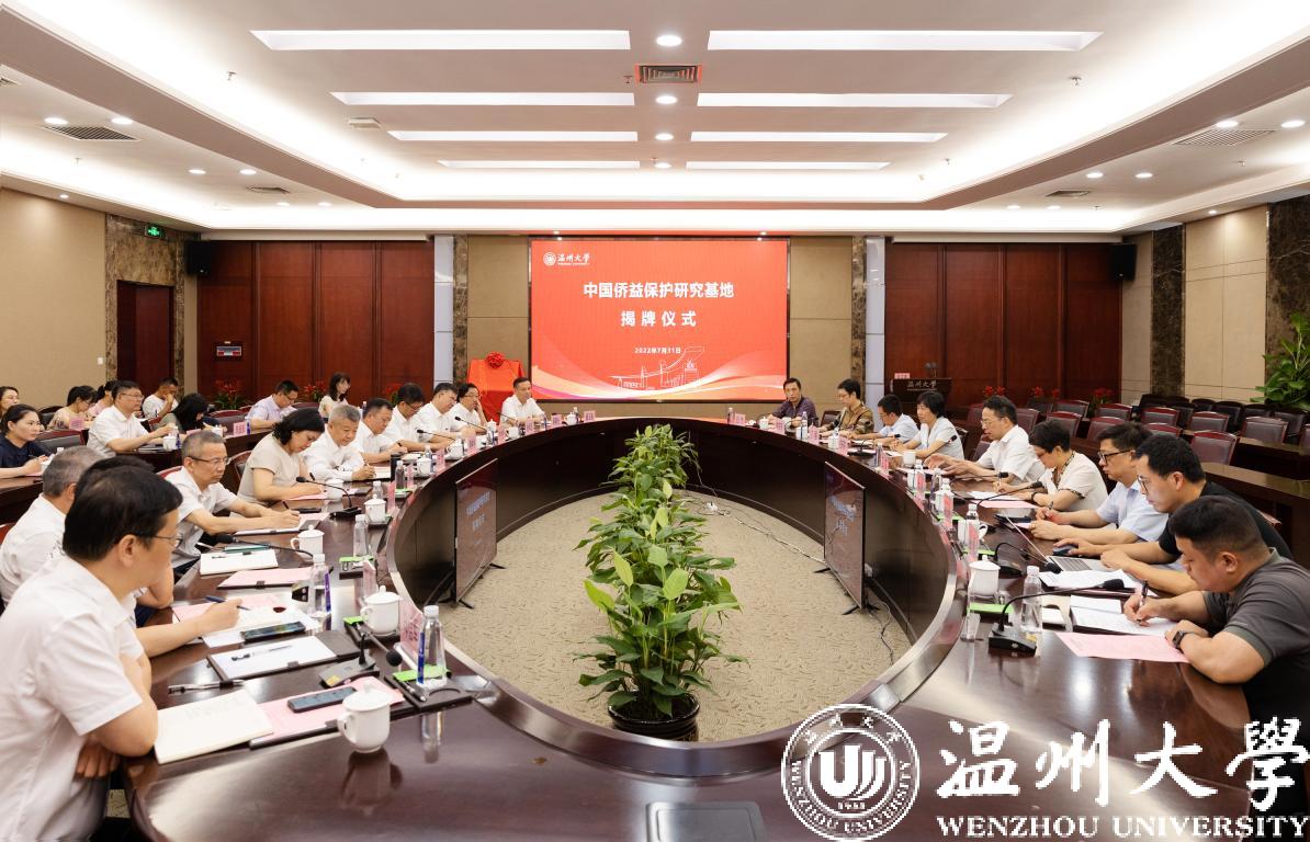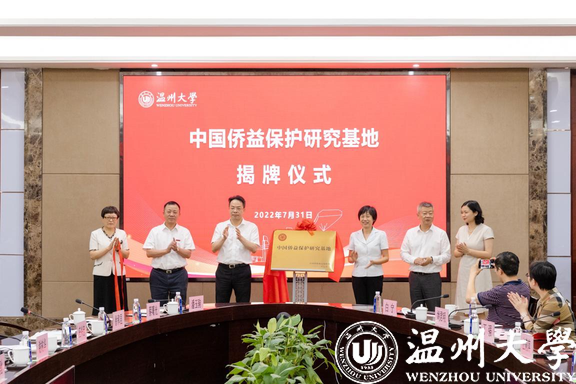 7月31日下午,中国侨益保护研究基地(beat365官方网站)揭牌仪式在beat365官方网站隆重举行。中国侨联党组成员、副主席候选人连小敏,中国侨联权益保障部部长张岩,浙江省侨联党组书记、主席庄莉萍,温州市委常委、统战部部长汪驰,温州市侨联党组书记吴娜丽,beat365官方网站党委书记谢树华共同为基地揭牌。beat365官方网站党委副书记庄兴忠主持。