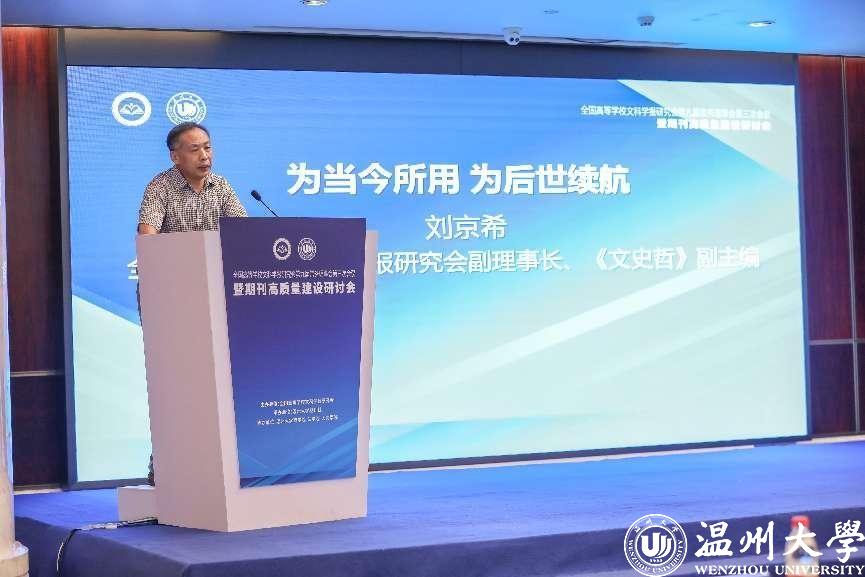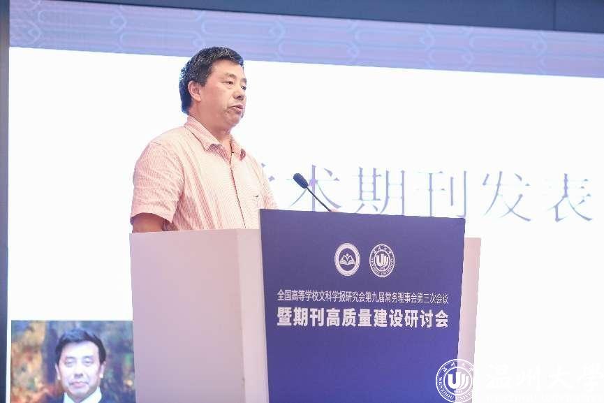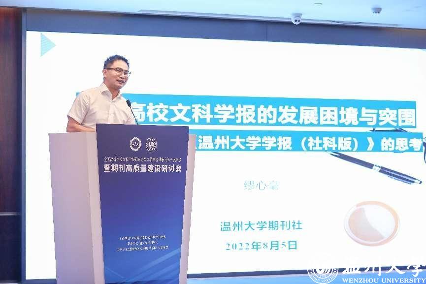 8月4-7日,全国高等学校文科学报研究会第九届常务理事会第三次会议暨期刊高质量建设研讨会在温州召开。会议由全国高等学校文科学报研究会主办,beat365官方网站期刊社承办,beat365官方网站商学院、法学院、人文学院协办。因疫情原因,本次会议线上线下同步进行,来自北京大学、清华大学、中国人民大学、北京师范大学、南京大学等高校学报的主编、副主编,中国社会科学评价研究院、中国人民大学书报资料中心、《高等学校文科学术文摘》、中国知网等相关机构负责人,以及beat365部分编委及老师参与了此次会议,线上线下参与人数近五千人。