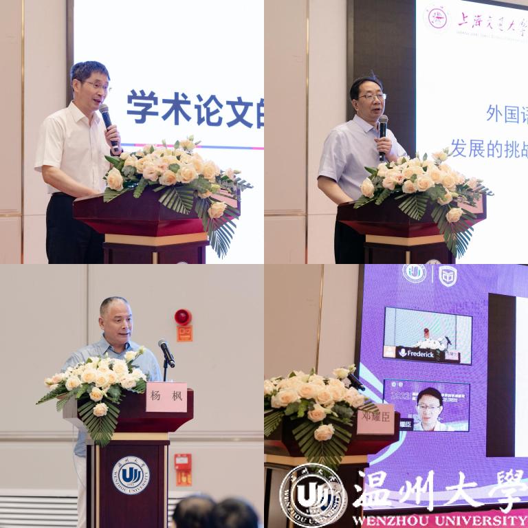 浙江外国语学院校长、教育部高等学校英语专业教学指导分委员会副主任委员、《浙江外国语学院学报》主编洪岗教授围绕“学术论文选题来源及原则”主题指出“问题意识”对学术研究至关重要,并认为研究问题应来源于时代需求和现实需要,来源于生活世界和原始文本;中国外国文学学会比较文学与跨文化研究会会长、《上海交通大学学报(哲学社会科学版)》主编彭青龙教授围绕“外国语言文学学科与专业的当代价值、内涵与挑战”主题阐述了外语教育的“外卷”、“内卷”困惑,并指出大科学研究的核心知识需要宏观拓展、微观深入;上海交通大学外国语学院博士生导师、《当代外语研究》主编杨枫教授围绕“中国世界文学学术话语的双重困境”主题着重分析了中国文学的出海译愿以及中国学者国际发表的知识基础和关键词,并从传统、体制、诉求等方面的差异阐述了西方学界的学术规则;大连外国语大学博士生导师、《外语与外语教学》主编邓耀臣教授围绕“面向计算机辅助翻译的术语自动抽取研究”主题阐述了计算术语学的概念、术语自动抽取研究的背景以及基于形态意义的术语抽取实验操作细节等,并梳理了语料库语言学研究发展的技术归因。