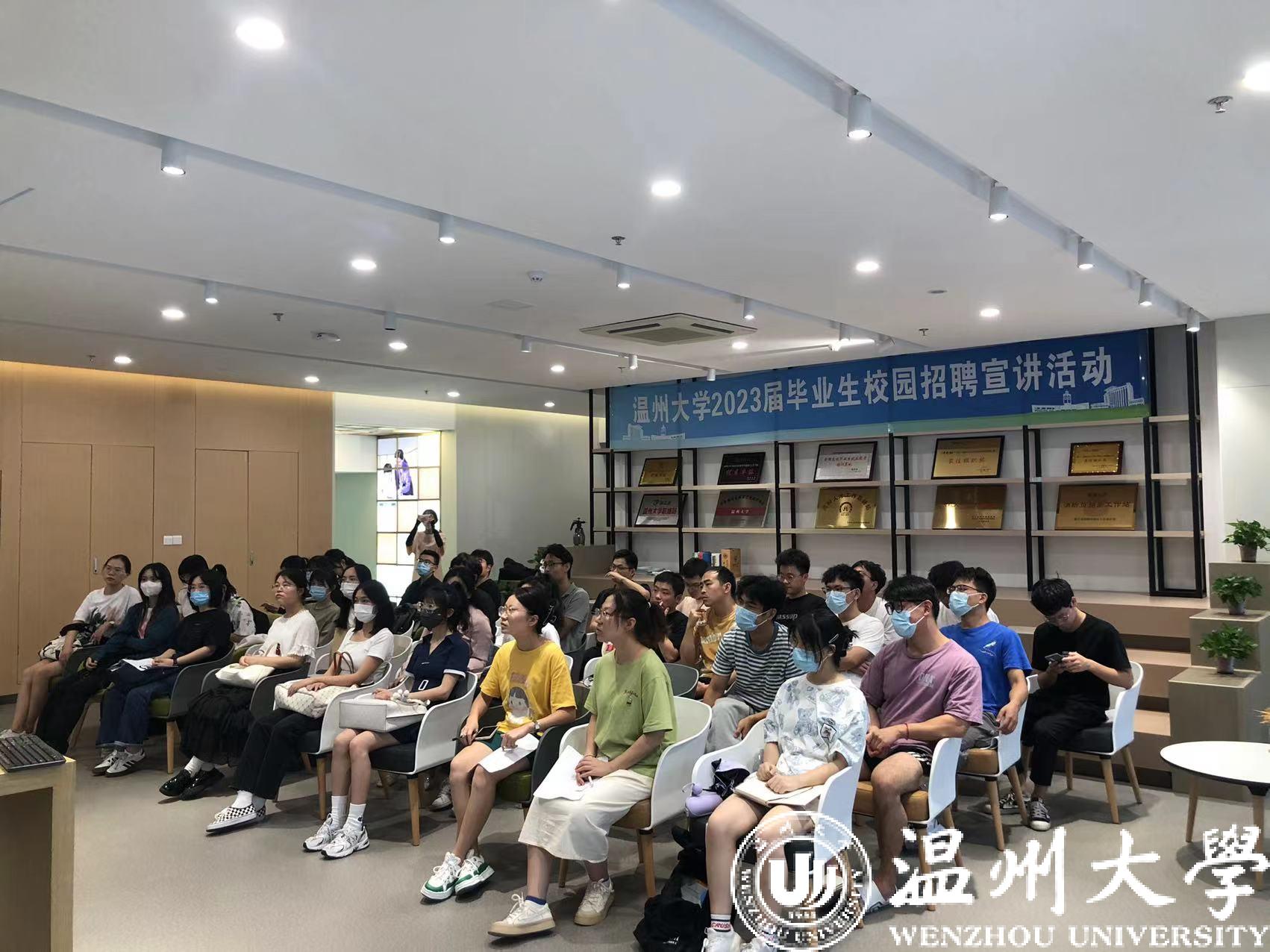 会前,通过活动预热,提前建立了微信宣讲群,吸引了近200位有意向的2023届毕业生。因防疫工作要求,现场宣讲会人数严格控制在了50人以内。