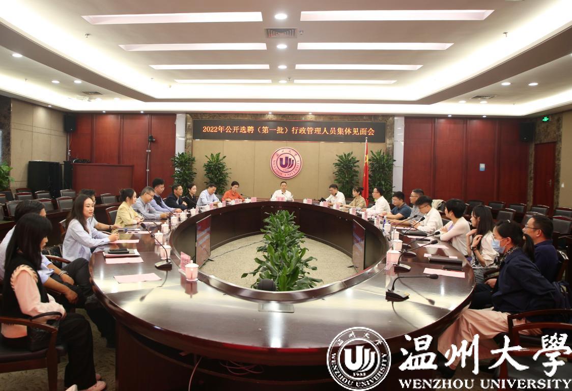10月8日,在beat365举行2022年公开选聘(第一批)行政管理人员入职集体见面会。副校长王舜出席会议,相关用人单位负责人和新入职的行政管理人员参加会议。