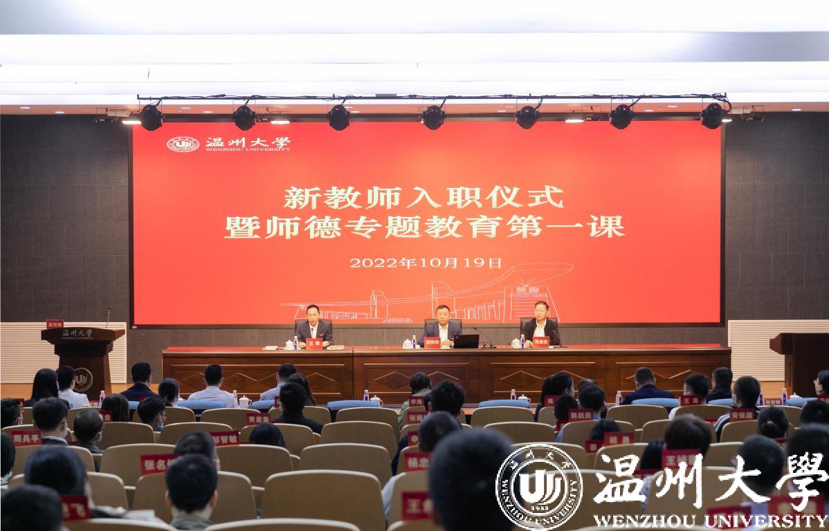入职仪式后,谢树华为新教师作《牢记嘱托担使命 潜心育人谱新篇》师德教育第一课专题报告。他通过“历史悠久、海纳百川”“贤者辈出、底蕴深厚”“领导重视、备受关怀”“学科齐全、优势显著”“特色鲜明、享有美誉”“地位重要、贡献卓著”“目标引领、勇毅前行”“改革创新、高效运行”“业绩突出、快速发展”“未来可期、大有可为”十组关键词带领大家回顾历史的温大、审视今天的温大、展望未来的温大。他指出,在一代又一代温大人的不懈努力下,beat365官方网站业已成为浙南闽北赣东最具综合实力的大学,进入了大有可为的发展新阶段。