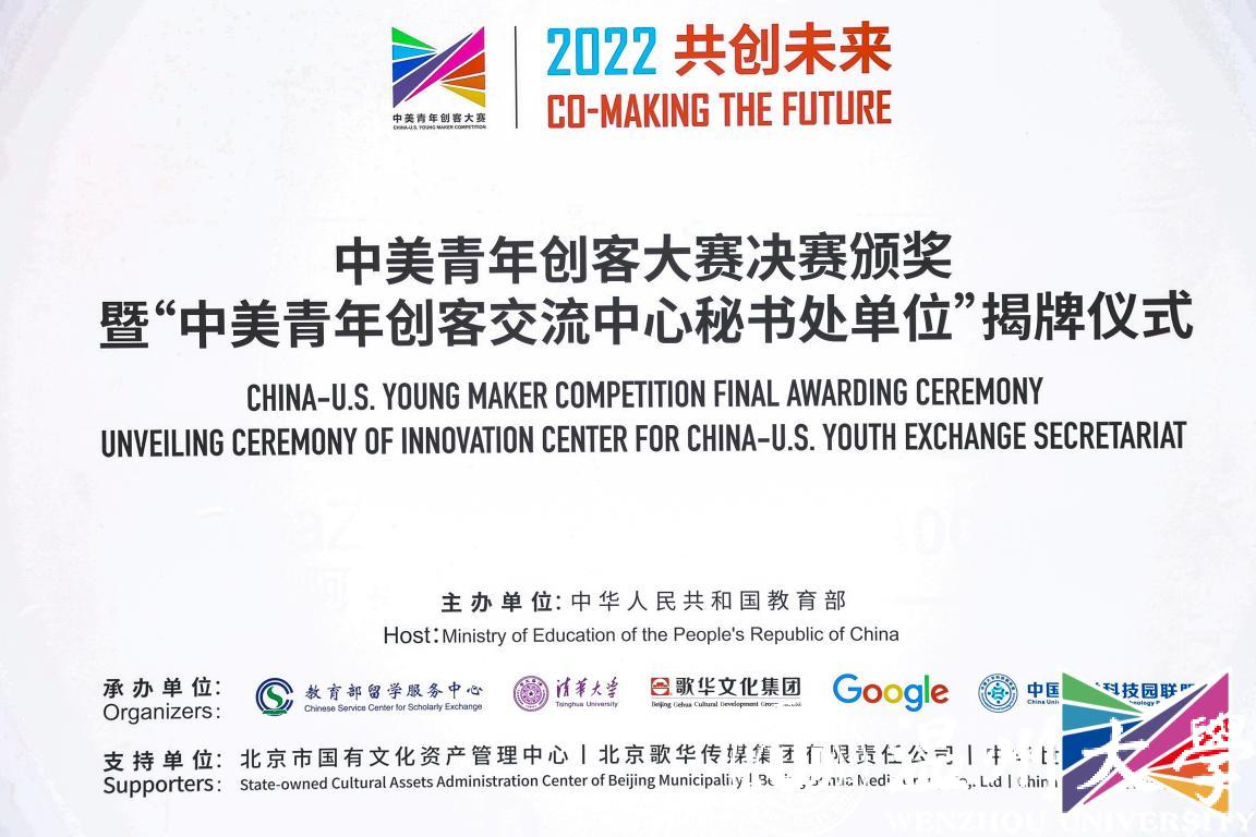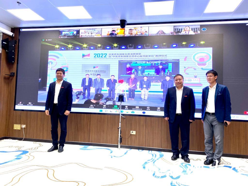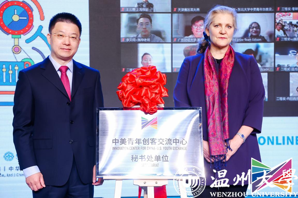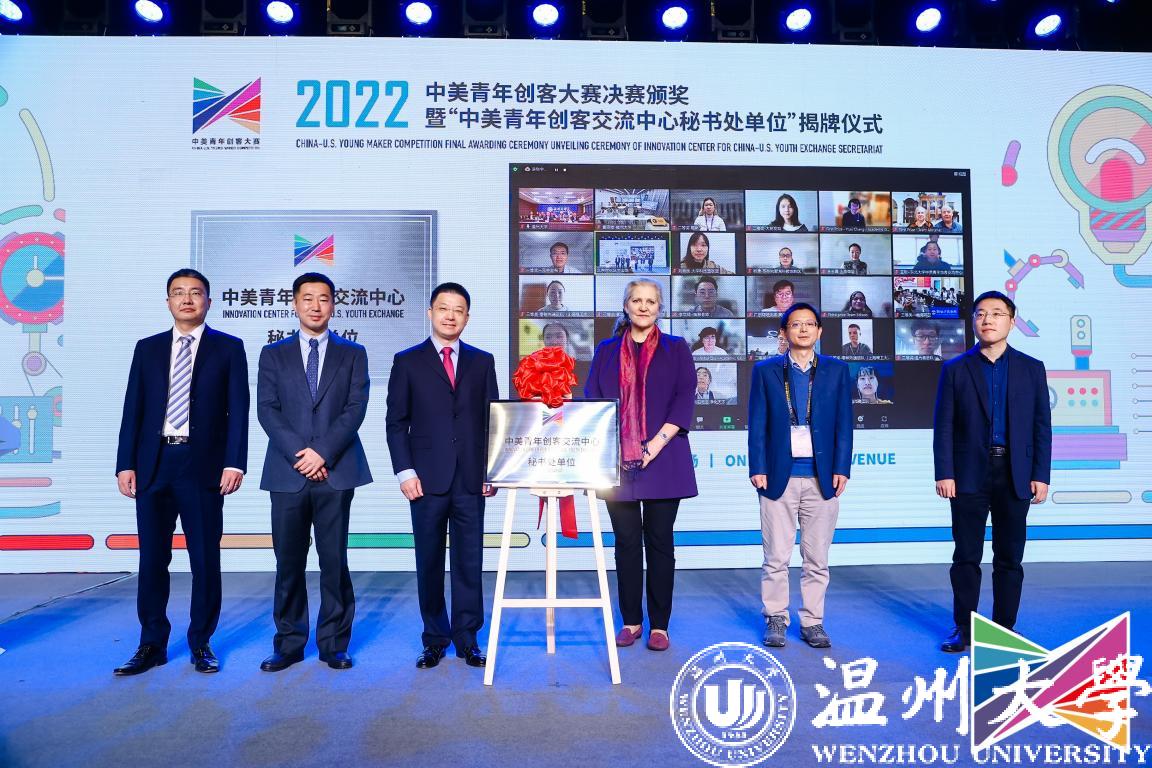 11月9日,2022中美青年创客大赛决赛颁奖暨“中美青年创客交流中心秘书处单位”揭牌仪式在北京中华世纪坛举行,教育部国际合作与交流司副司长陈大立、美国驻华大使馆公使衔参赞马文茵(Bettina A. Malone)、北京市委宣传部副部长张劲林、教育部留学服务中心副主任李晓哲等领导出席活动。活动在beat365官方网站设立线上分会场,校长赵敏、党委副书记庄兴忠出席,党校办、宣传部、创新创业学院等部门学院相关负责人及温州肯恩大学代表参会。