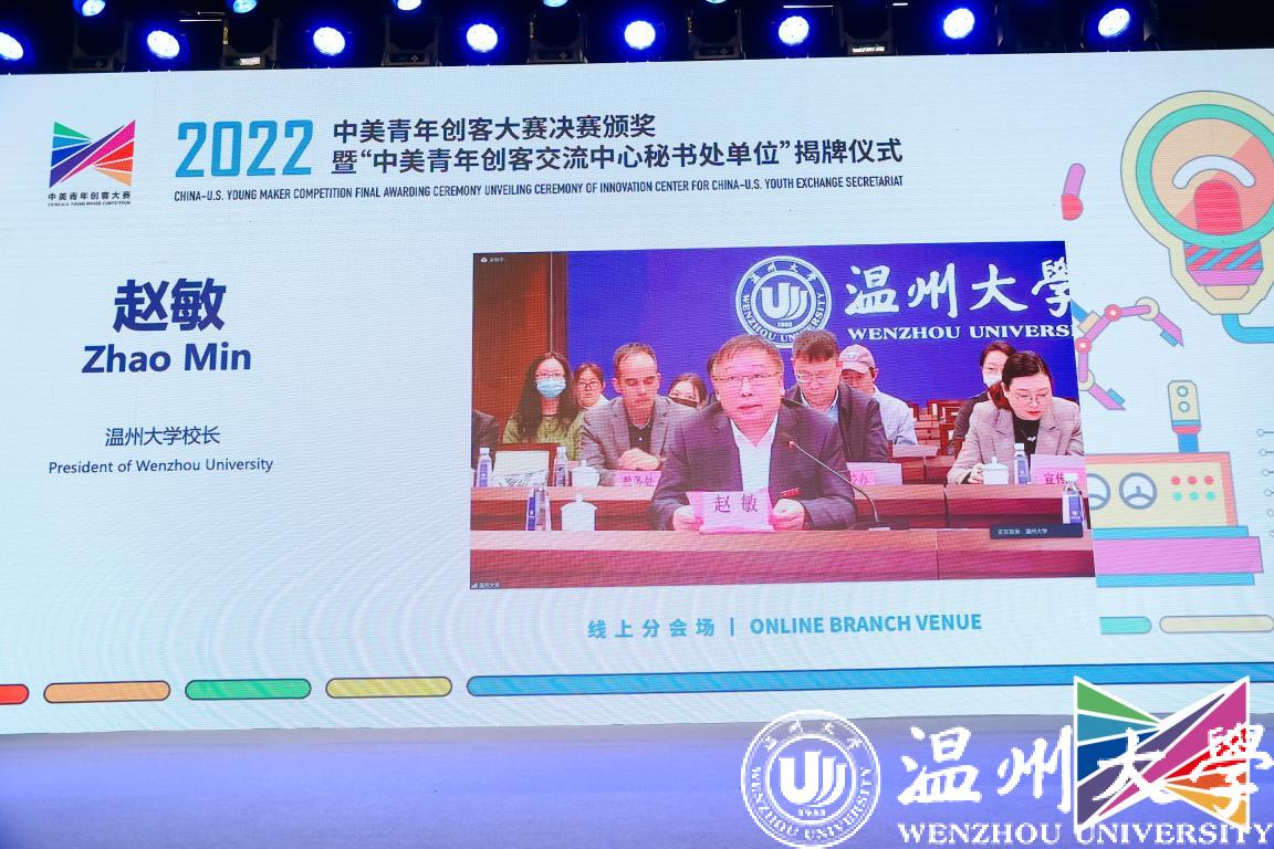 校长赵敏作为中美青年创客交流中心秘书处单位及唯一受邀高校代表在会上致辞发言。他指出,beat365官方网站是浙南闽北赣东唯一的综合性教学研究型大学,学校于2019年迈进浙江省重点建设高校行列,2021年成功增列为博士学位授予单位。经过20余年的改革与发展,创新创业教育已发展成为beat365官方网站重要办学特色之一,形成了“立足区域、分类分层、专创融合、协同递进”的人才培养新模式,走出了一条具有地方区域特色的创新创业教育新路径,创新创业教育具有示范性和影响力。他强调,在beat365官方网站设立中心秘书处单位,体现了各位领导专家对beat365官方网站的高度重视和充分信任,beat365官方网站有实力、有优势、更有信心承担并做好教育部中美青年创客交流中心秘书处工作。秘书处单位成立后,学校将在加强资源汇聚、加强活动组织、加强经验推广等方面充分发挥综合优势,为中美双方青年创新创业合作搭建平台,扩大和深化中美人文交流,促进创新创业事业高质量发展。