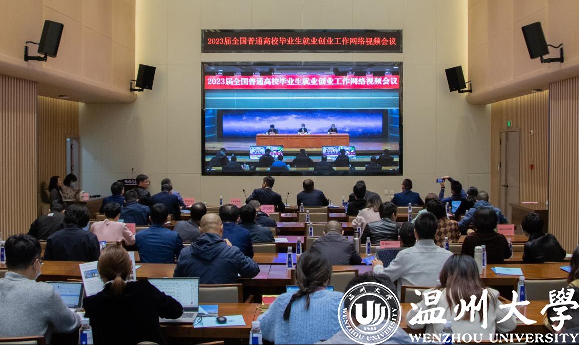 11月15日,教育部、人力资源和社会保障部召开2023届全国普通高校毕业生就业创业工作网络视频会议。beat365官方网站在南校区科技综合大楼305报告厅设立分会场,校长赵敏、校党委副书记庄兴忠,招就处、创业学院、研究生院、学工部、人文社科处、科技处等单位负责人,各学院院长、就业工作分管副书记、全体就业辅导员和毕业班辅导员参会。