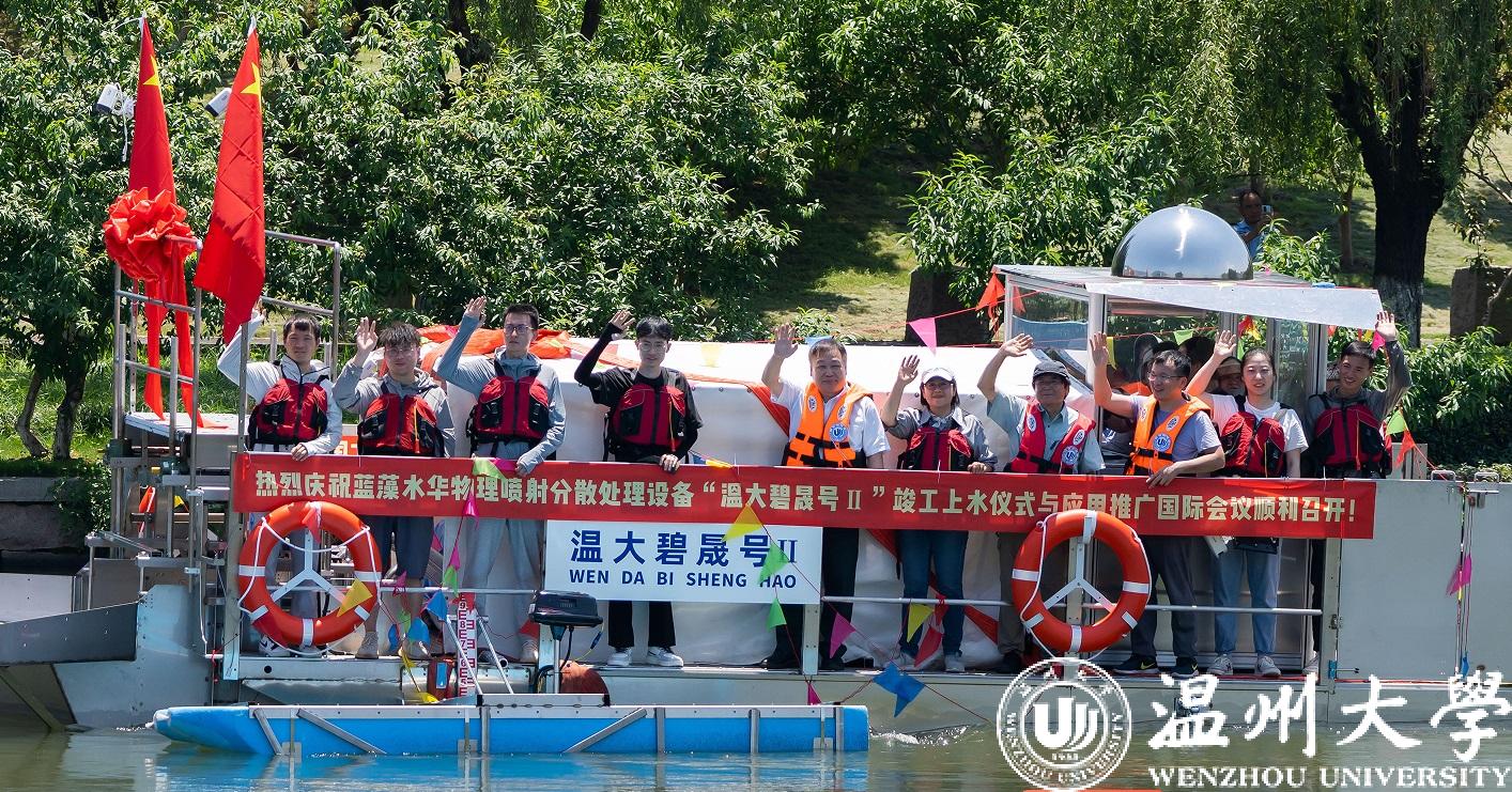 6月24日上午,beat365官方网站自主研发的第二代蓝藻水华物理喷射处理装置“温大碧晟号II”上水仪式及应用推广国际会议举行。多位院士、日本理化学研究所、国内外多所知名高校代表等线上线下参加上水仪式及应用推广国际会议。“温大碧晟号II”的研发是beat365官方网站赵敏教授主持的国家重点研发计划国际合作重点专项“物理喷射分散技术处理湖库蓝藻水华的机理研究及应用”研究的关键内容之一,是温大科研人员完全自主设计制造的首艘组合式、自动化蓝藻处理船装备。“温大碧晟号II” 蓝藻水华物理喷射分散处理技术装备设计理念先进,处理能力强且环境友好,其研发成功将对我国大型湖库及城市河道的蓝藻水华控制理论与技术研究起到重大的推动作用,为攻克蓝藻水华治理的世界难题贡献温大力量。