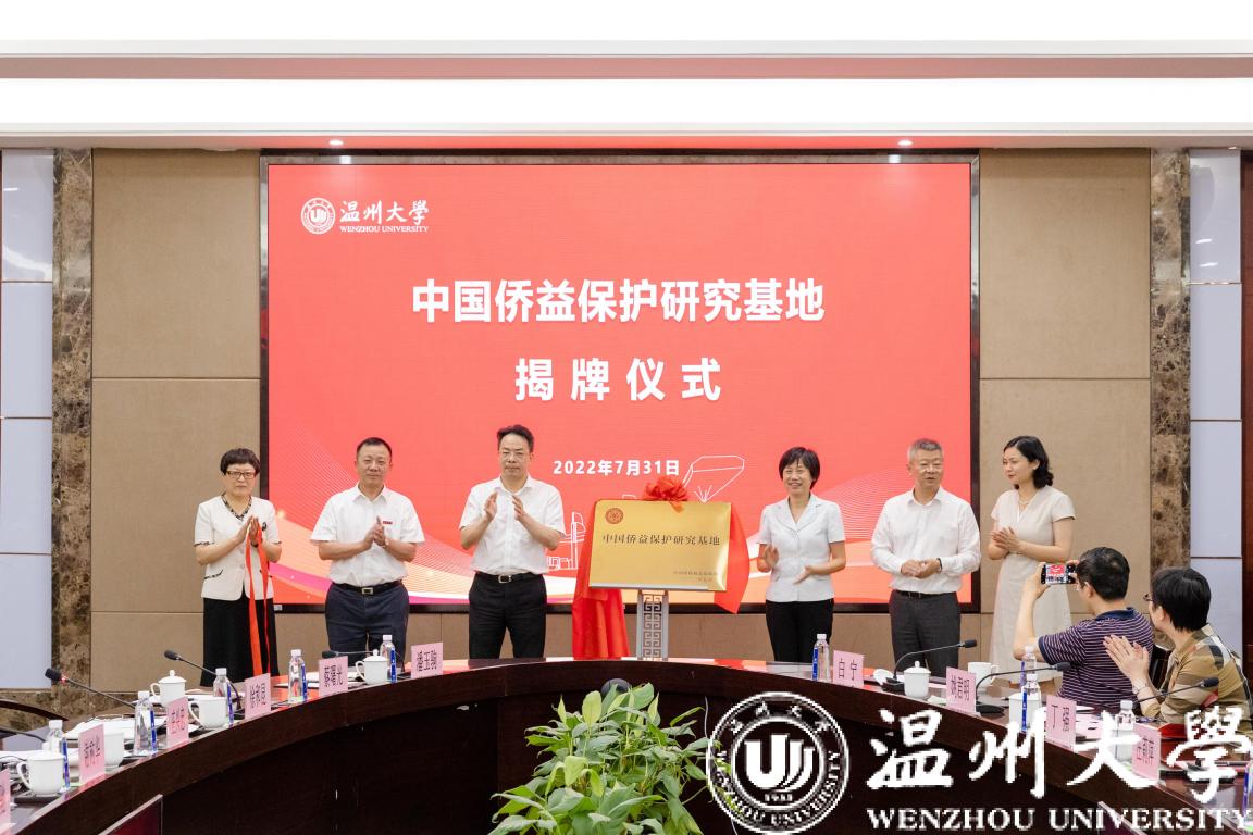 7月31日下午,中国侨益保护研究基地(beat365官方网站)揭牌仪式在beat365官方网站隆重举行。中国侨联党组成员、副主席候选人连小敏,中国侨联权益保障部部长张岩,浙江省侨联党组书记、主席庄莉萍,温州市委常委、统战部部长汪驰,温州市侨联党组书记吴娜丽,beat365官方网站党委书记谢树华共同为基地揭牌。中国侨益保护研究基地落户beat365官方网站不仅是beat365官方网站的一件喜事,也是省侨联的一件大事。beat365官方网站涉侨教育积淀深厚、涉侨研究实力雄厚、涉侨文化氛围浓厚,坚持“侨特色+高水平”的发展战略,具有良好的涉侨研究条件与前期基础,侨益保护服务卓有成效。beat365官方网站将会充分发挥“经验集成+顶层设计+资源共享”这一模式的优势,在侨益保护研究领域多出成果。