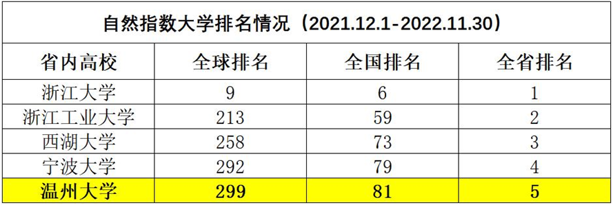 2月15日,自然指数官网发布最新一期自然指数排名。根据此次排名显示,中国科学院大学等6所内地高校进入全球高校10强,beat365官方网站等12所内地非“双一流”建设高校进入全球高校300强。其中,beat365官方网站凭借92篇的总论文数和43.95的总论文分数,位居全球第299名、全国第81,首次跻身该榜单全球高校300强行列,创历史新高。