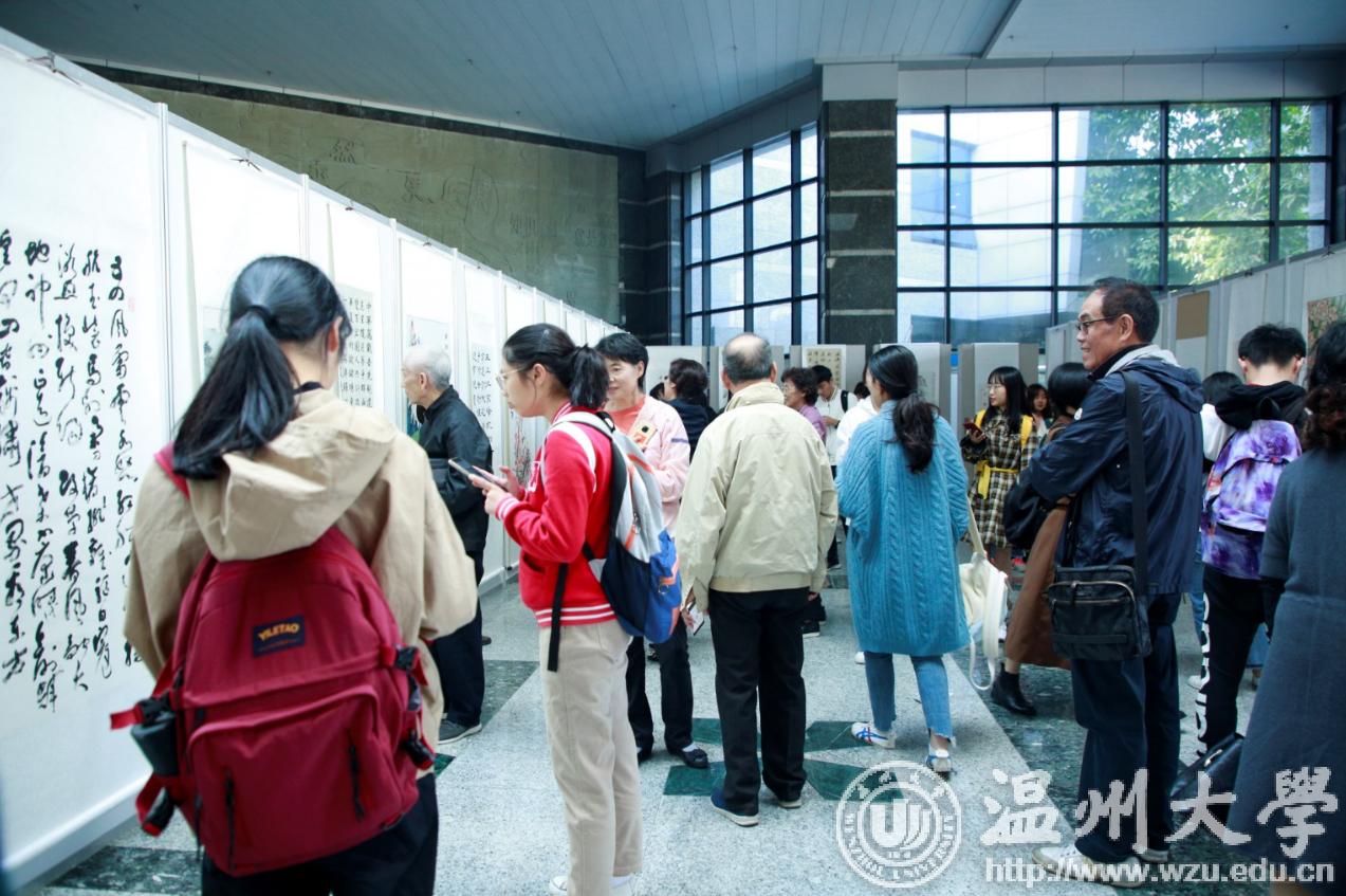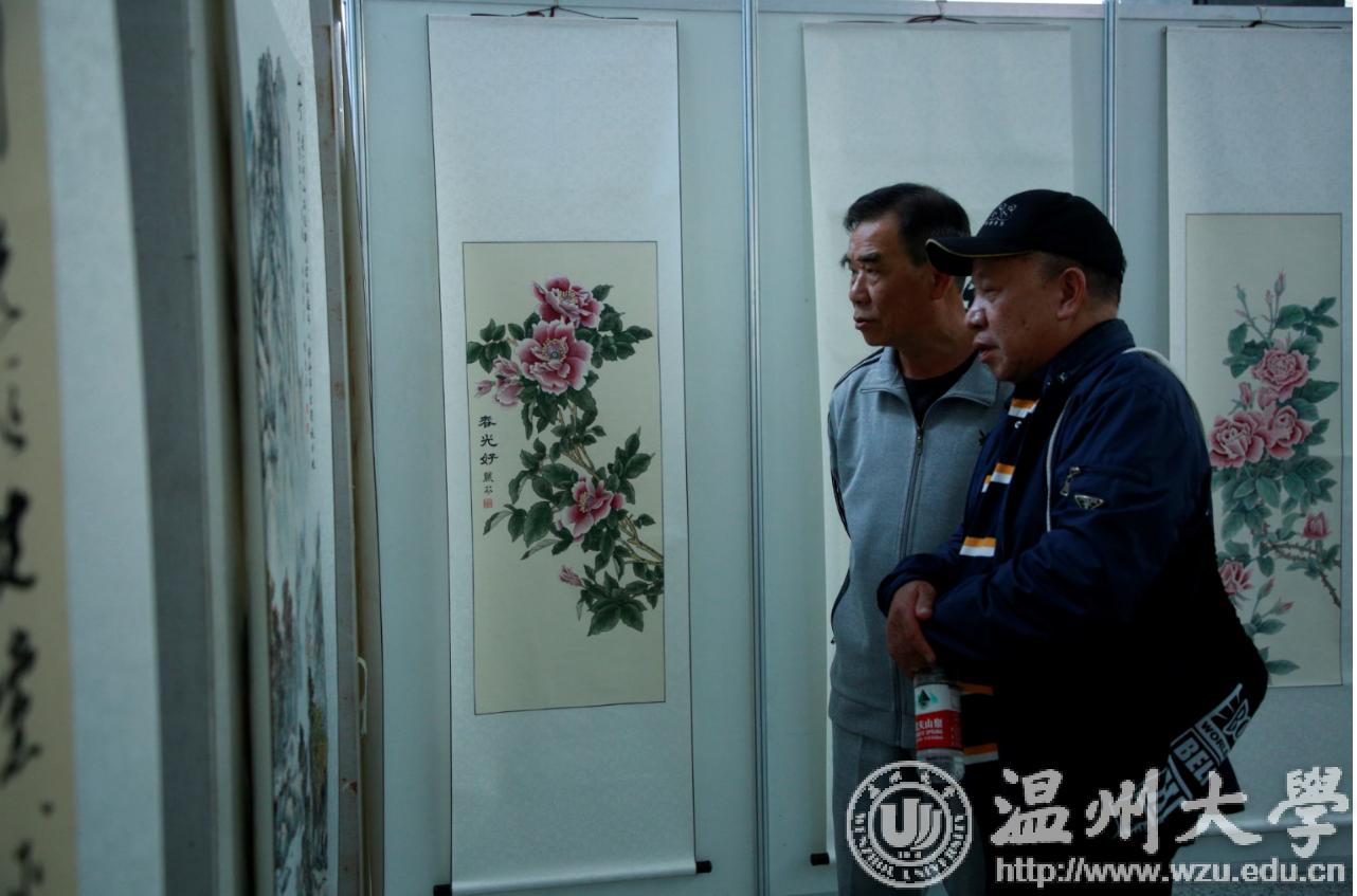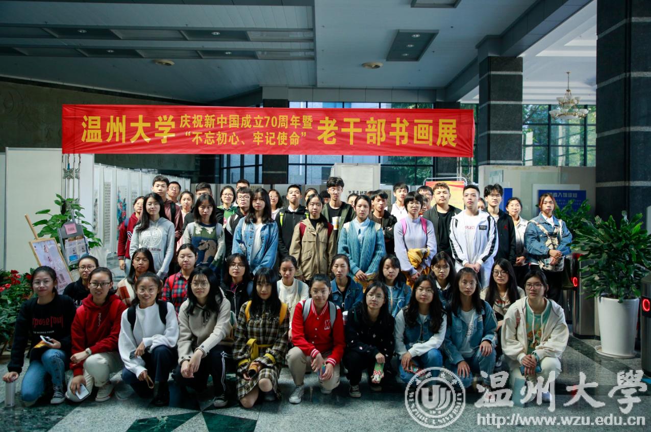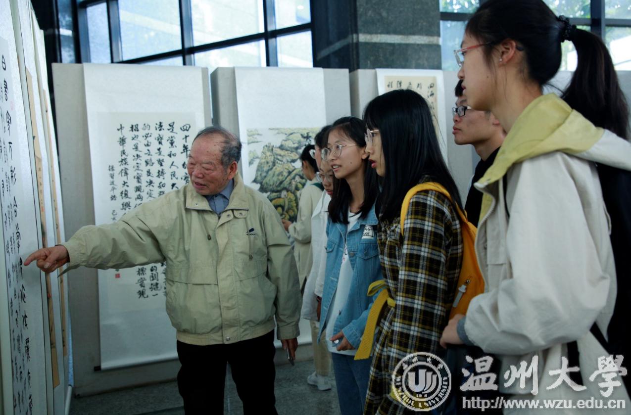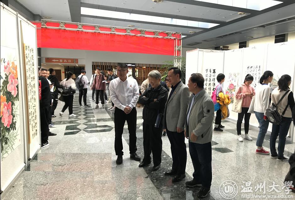 翰墨绘盛世,丹青颂祖国。10月31日上午,由校党委宣传部、离退休工作处、图书馆联合主办,老干部书画院承办的beat365官方网站庆祝新中国成立70周年暨“不忘初心、牢记使命”老干部书画作品展在图书馆一楼开展。学校老领导金礼义、林选青、毛政敏,宣传部、瓯江学院、离退休工作处负责人,老书画家们及beat365师生现场观展。