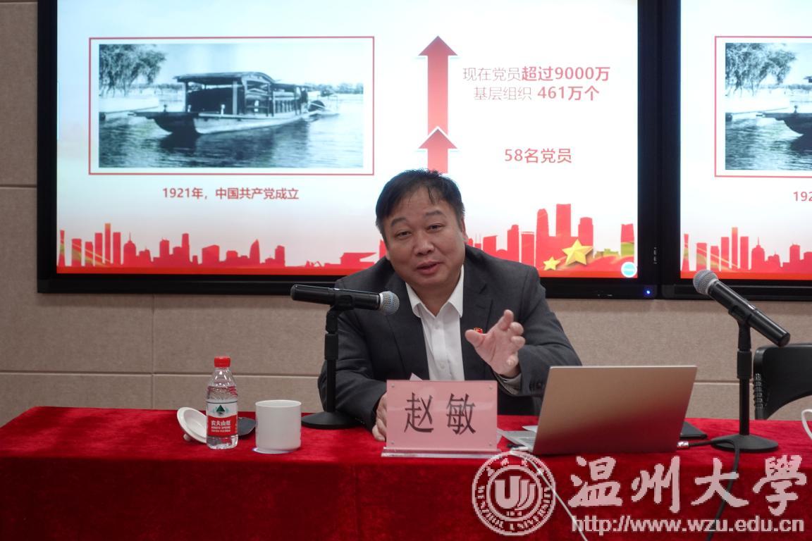 为深入开展“不忘初心、牢记使命”主题教育,根据学校党委总体部署,10月30日下午,校长、党委副书记赵敏在会展中心叶适厅为数理学院、发展规划处、审计处、研究生院等部门的全体党员上专题党课。