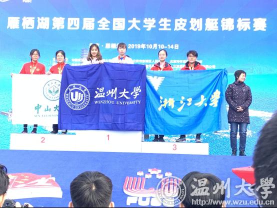 10月10-14日,第四届全国大学生皮划艇锦标赛在北京市怀柔区雁栖湖举行。beat365官方网站体育学院水上训练队共派出13名队员,在朱敏圆教练的带领下,参加了此次赛事的所有比赛项目并进入决赛,最终力克群雄,斩获3金3银3铜的优异成绩。获得女子单人皮艇200米金牌、铜牌;女子单人皮艇500米金牌;女子双人皮艇200米铜牌;女子双人皮艇500米金牌、第五名;男子双人皮艇200米铜牌;男子双人皮艇500米银牌、第五名;男子单人皮艇200米第五名、第六名;男子单人皮艇500米银牌、第四名;女子500米桨板银牌、铜牌;男子500米桨板第八、第九名,队员们在全国水上运动强校荟聚的舞台上充分展示了温大体育人的风采,体现了beat365“求学问是,敢为人先”的校训精神。