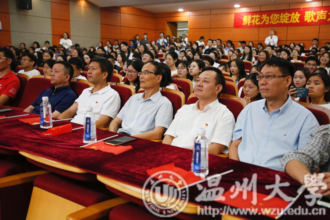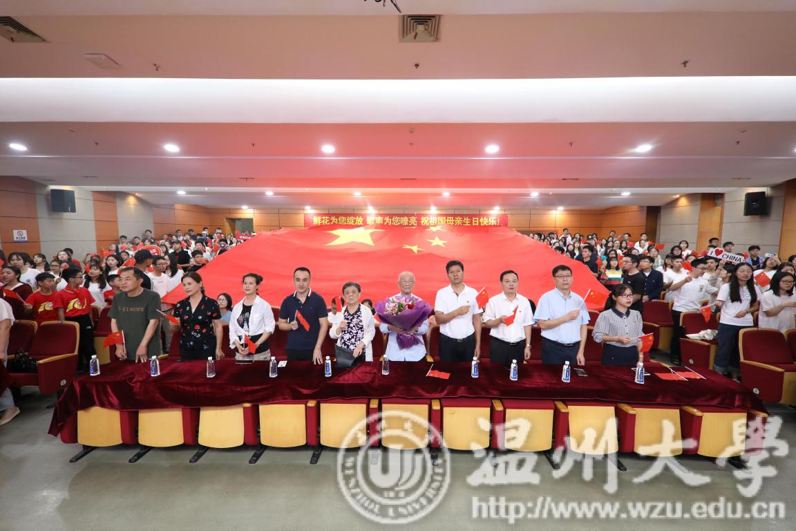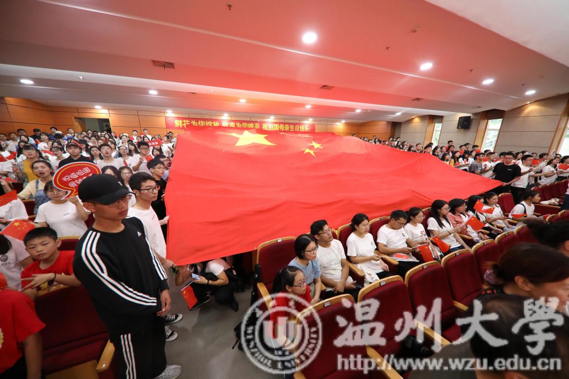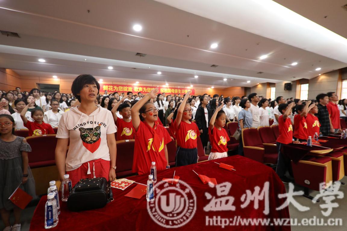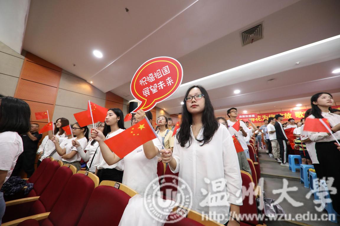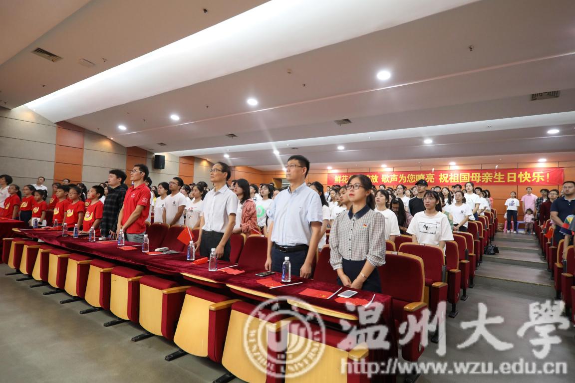 上午九点,活动正式拉开序幕,在场师生合唱《beat365官方网站校歌》“大哉师道天下尊,承往哲兮启后人。厚培德本,深濬智源,学成致用教化谆。光大国族兮,造福人群。东海水,雁荡山,我温大精神,浩浩宕宕。”大屏幕上徐徐展开和闪现的照片上寄托着温大人对祖国母亲最真挚的祝福,诉说着温大人对祖国母亲诚挚的愿望。