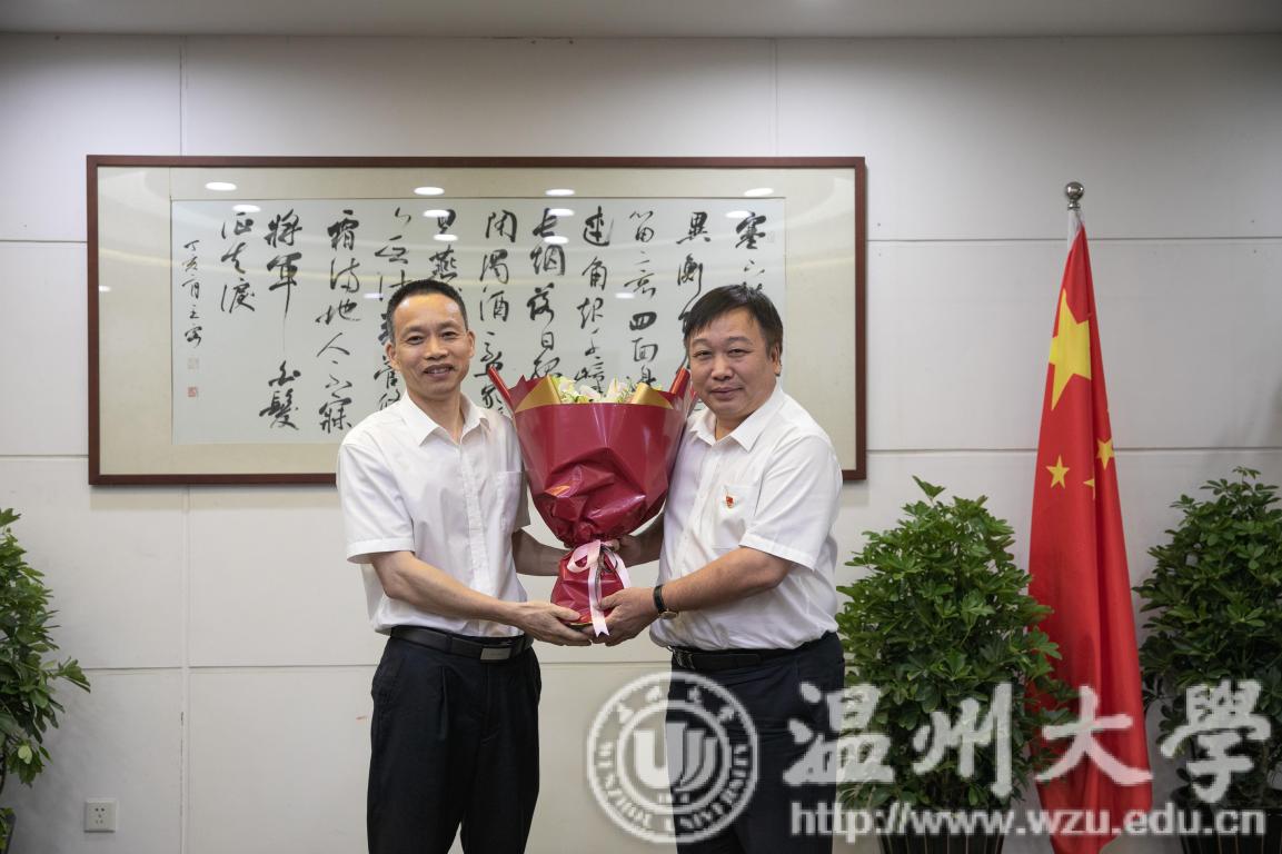 29日上午,在庆祝中华人民共和国成立70周年前夕,温州市总工会党组书记、常务副主席程龙凤一行来beat365慰问“全国先进工作者”赵敏教授和“全国五一劳动奖章”获得者俞为民教授,为他们送上鲜花,并召开座谈会。beat365官方网站党委副书记庄兴忠、工会副主席张希均等出席座谈会。