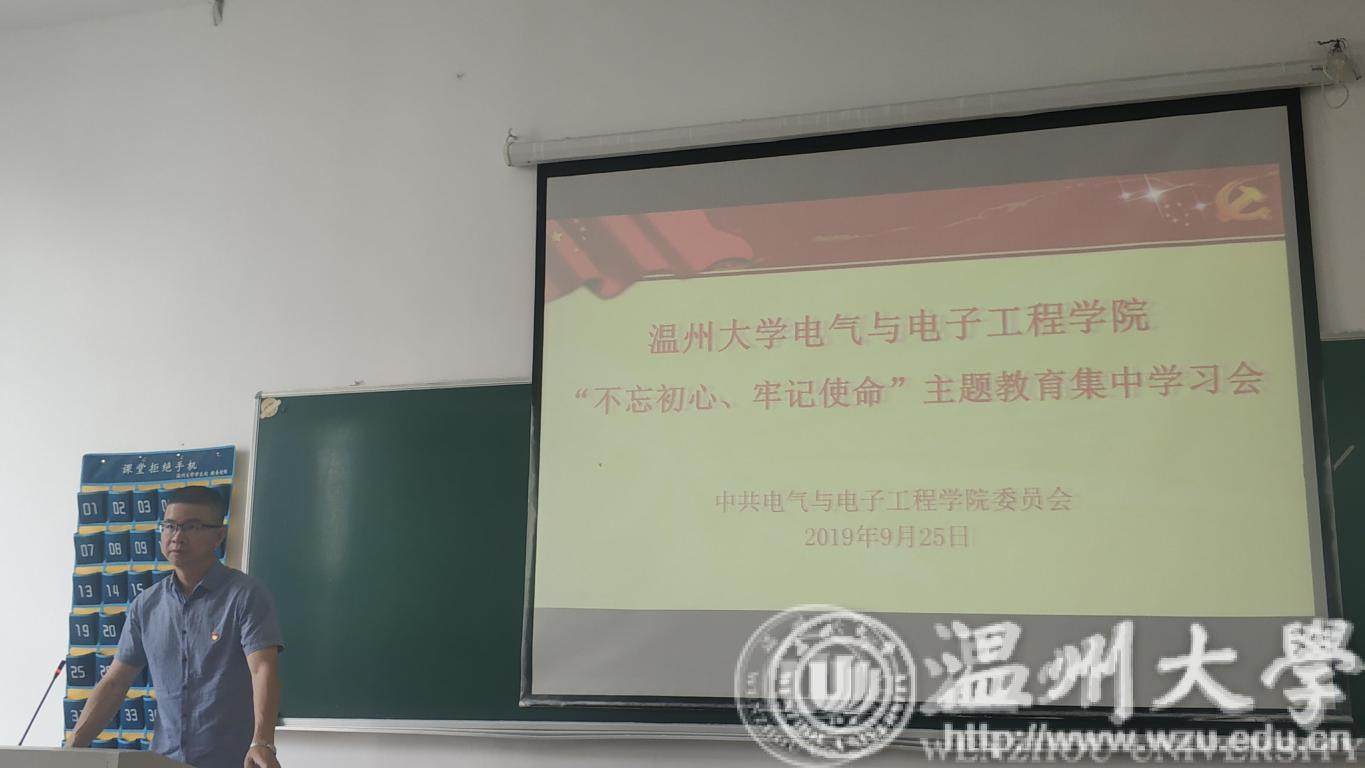 【马克思主义学院】王柏民书记带领师生党员共同学习了学校“不忘初心、牢记使命”主题教育活动的实施方案,就beat365主题教育活动的重大意义、目标任务、工作措施、工作要求等四方面做了深入解读,并结合学院工作实际,就我院主题教育工作进行了具体部署。全院师生在学习、工作过程中,一定要立足beat365“‘省市共建’省重点建设高校”“博士学位授予单位”、以侨为特色的“省部共建”高校三大发展目标,立足省重点马院建设,将自身发展与学院、学校发展相结合,在主题教育中,激发出干事创业的热情和进取精神,并转化为强大的动力,以优异的成绩,向中华人民共和国成立70周年献礼。