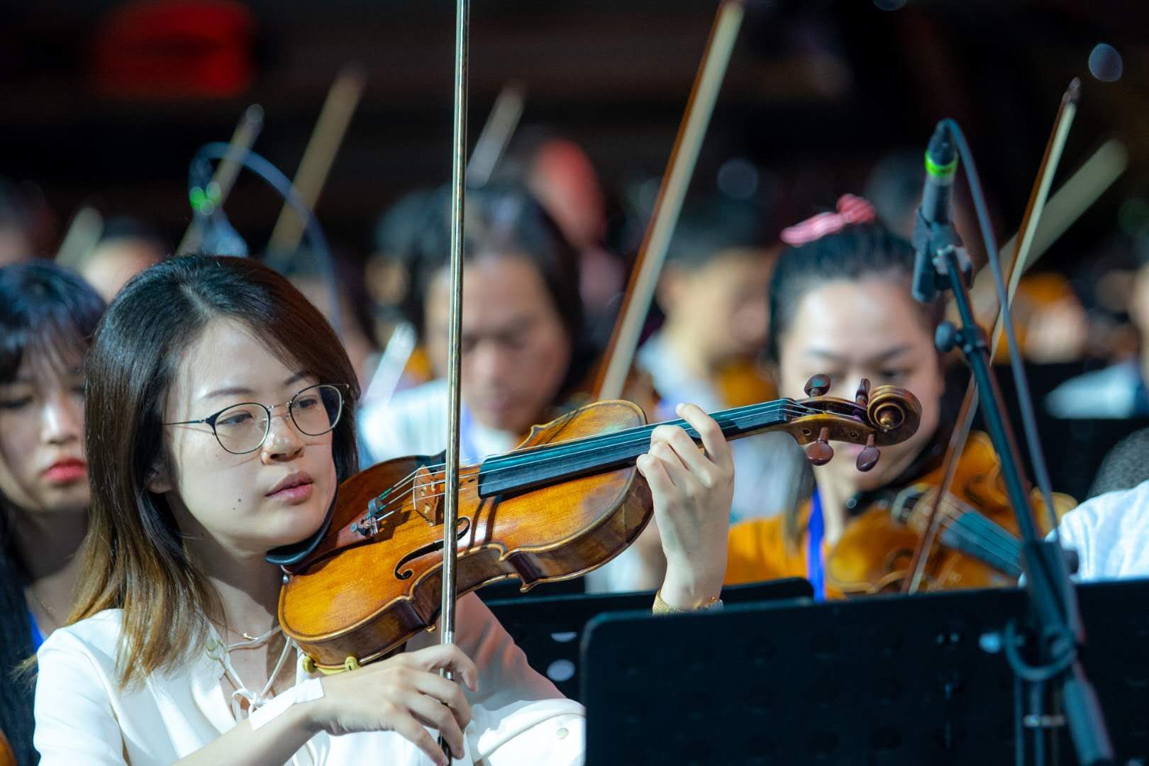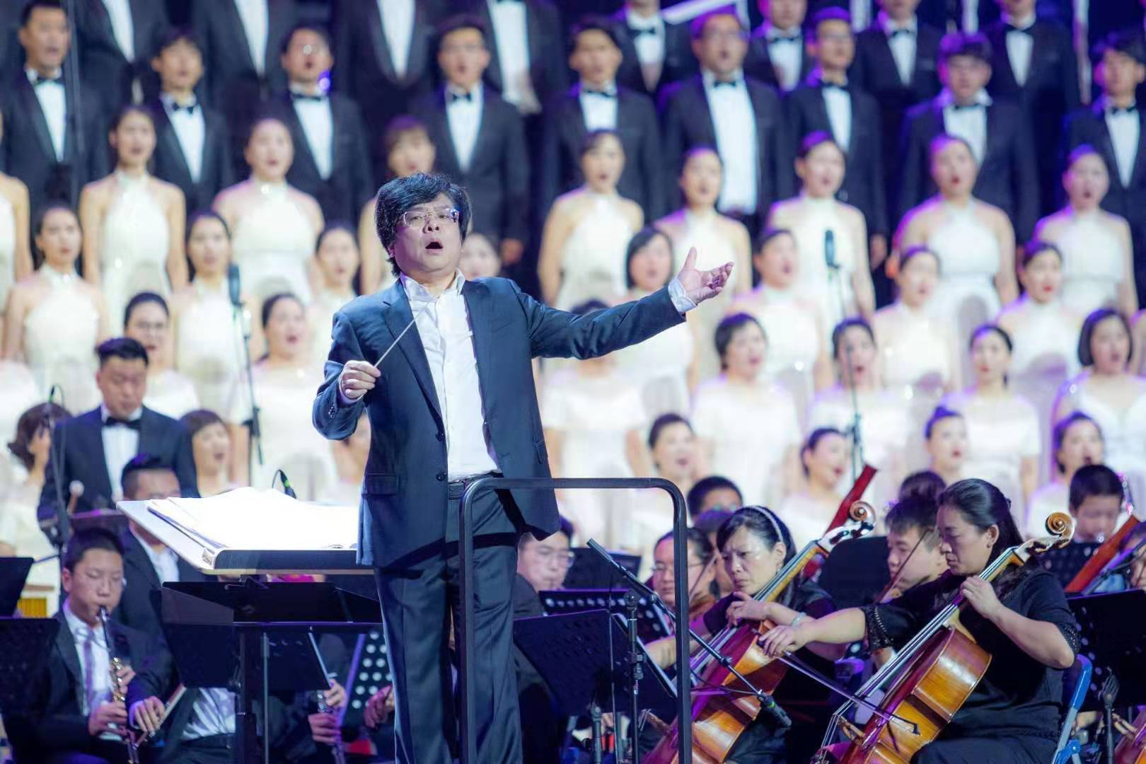 万人歌咏会上,beat365师生在舞台上大展异彩。音乐学院院长邹跃飞领衔,担任整场歌咏会的艺术总监。他还是现场百人乐队指挥,豪情满怀,用精准的挥拍带领全场高歌颂中华。