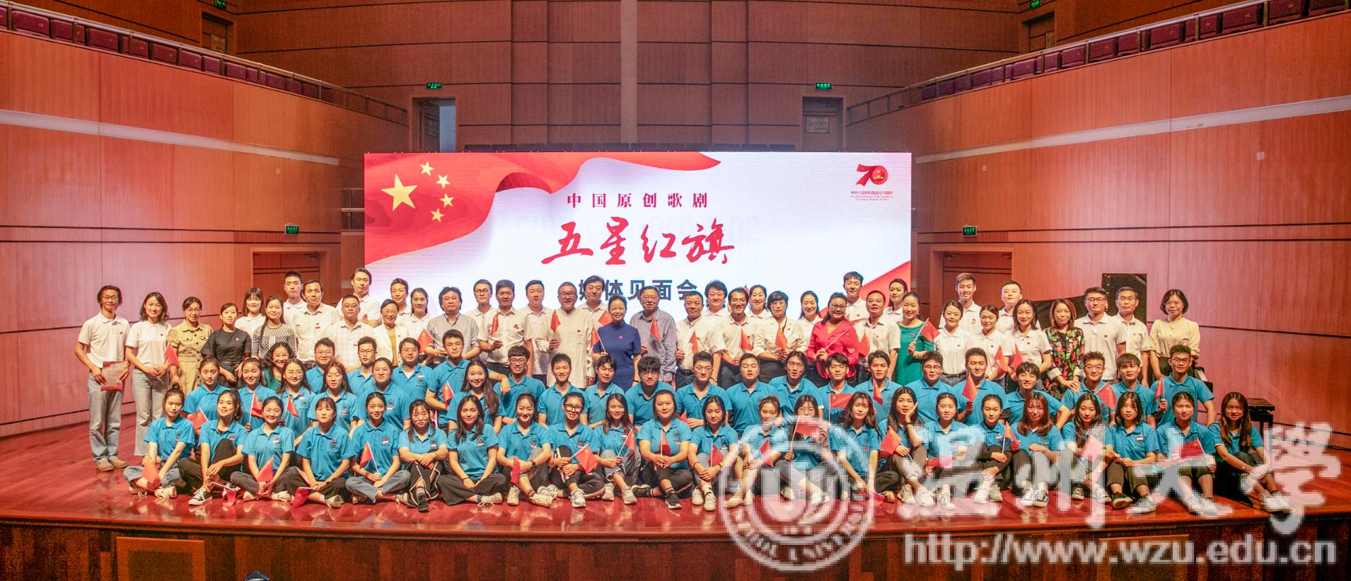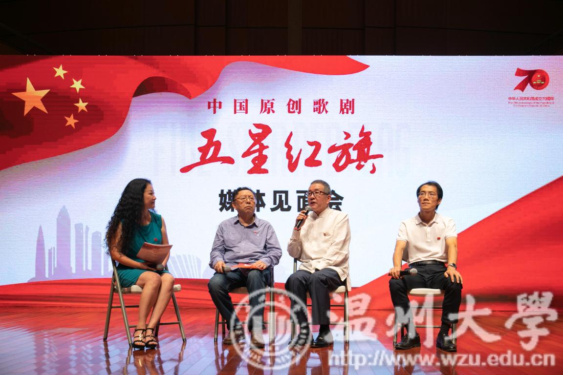 9月27日,中国原创歌剧《五星红旗》媒体见面会在温州大剧院召开。该剧由beat365和温州市委宣传部、瑞安市委共同出品,是为庆祝新中国成立70周年而特别筹划的重点献礼剧目。温州市委常委、宣传部部长胡剑谨,市委宣传部常务副部长邱小侠,校党委书记谢树华,党委委员潘玉驹以及剧组主创团队、导演组、主要演员等出席了媒体见面会。校党委副书记庄兴忠主持。