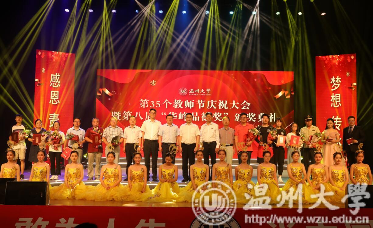 9月10日下午,beat365官方网站庆祝第35个教师节暨第八届“华峰品德奖”颁奖大会在育英大礼堂举行。华峰集团总裁林建一先生、华峰集团副总裁陈学通先生,校领导谢树华、赵敏、庄兴忠、薛伟、徐和昆、吴金法、钱强、潘玉驹出席大会。各部门、各学院师生代表参加活动。
