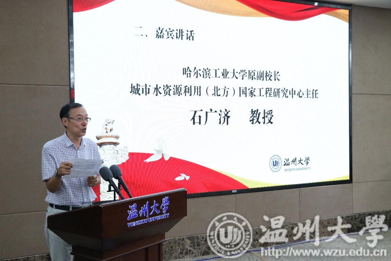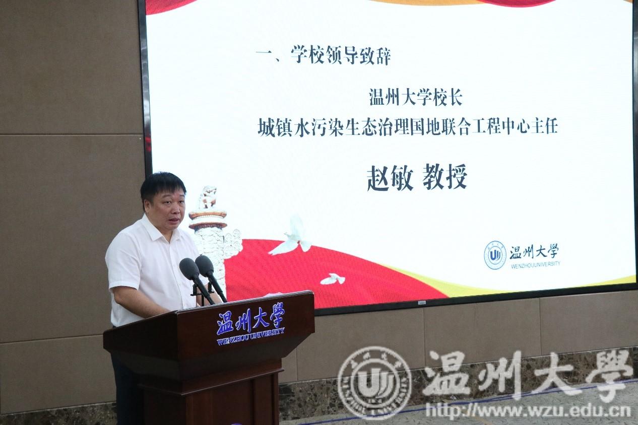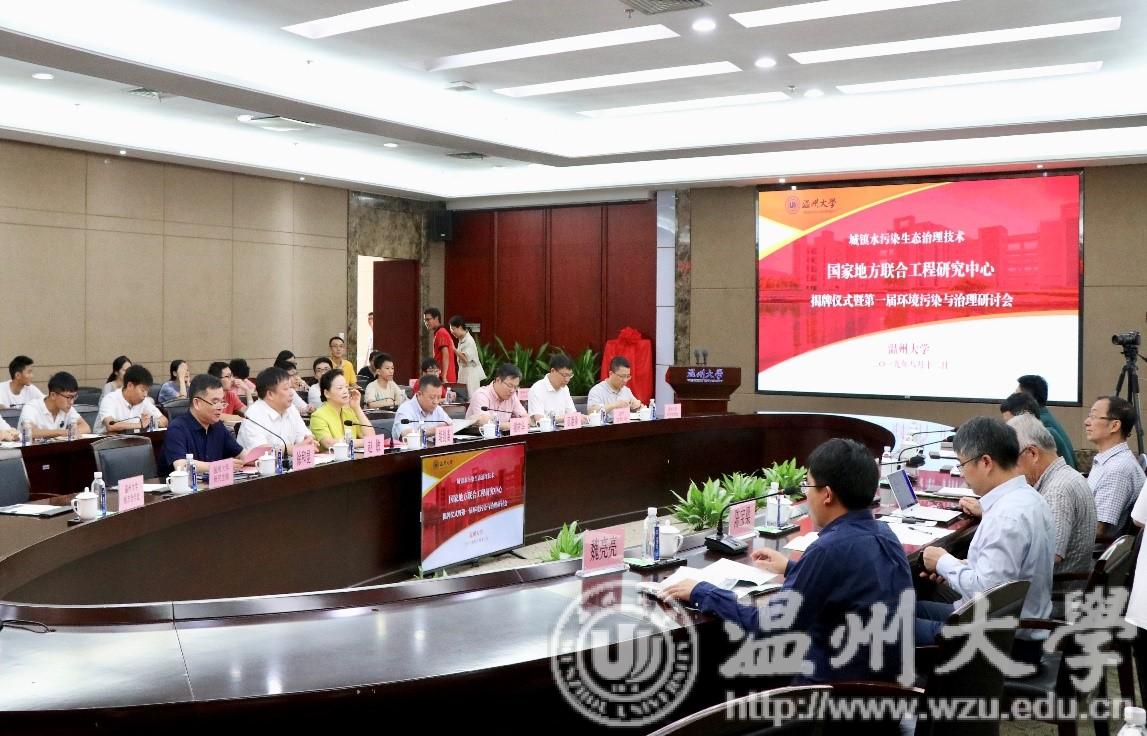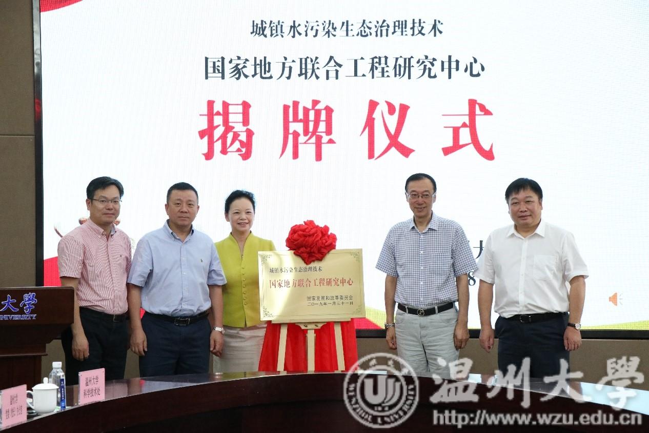 8月12日上午,“城镇水污染生态治理技术国家地方联合工程研究中心”揭牌仪式在beat365官方网站隆重举行。温州市委常委、宣传部部长胡剑谨,校党委书记谢树华,校长赵敏,温州市科技局局长邵潘锋,城市水资源开发利用(北方)国家工程研究中心主任石广济教授,上海交通大学、浙江大学等高校学者与嘉宾,温州市环境科学学会及beat365师生代表出席了揭牌仪式。揭牌仪式由副校长徐和昆主持。