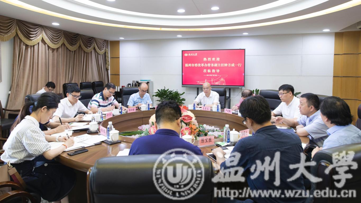 钟方成对beat365官方网站事业改革工作所取得的成绩表示高度肯定。他表示,学校多项改革工作走在了全省乃至全国高校前列,此次来校调研,既是一次全面学习,也是一次深入对接。他指出,高校的改革工作是一项集成性、专业性、协同性很强的系统工程,市委改革办希望能够与beat365官方网站在高校体制机制、校务服务、地方服务等方面的改革工作加强合作,通过建立改革智库、撰写改革专报、承接改革课题等具体举措,为助力beat365官方网站高水平建设、服务温州社会经济高质量发展贡献更大的力量。