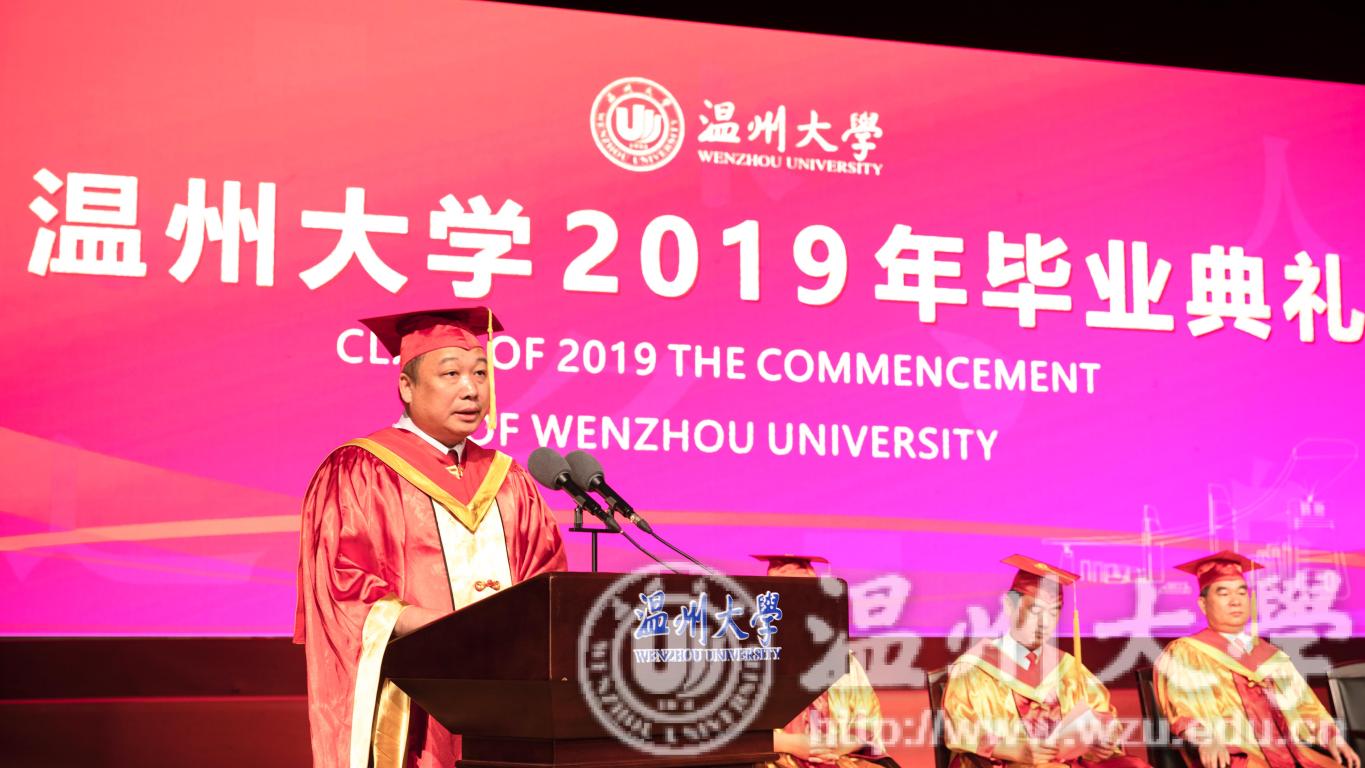 “希望大家继续秉承‘求学问是,敢为人先’的校训精神,不忘初心、勇于创新、坚守恒心,勇敢向未来出发!”校长赵敏致辞。他说,“四年里,你们秉持“求学问是,敢为人先”的校训精神,努力拼搏,取得了累累硕果。温大刻录着你们学海泛舟的奋斗足迹,留下了你们追寻梦想的汗水泪水。”他寄语毕业生:向未来出发,不忘初心,在未来的道路上,要永远心怀理想和信念,不管面对多少荆棘,内心都能保持笃定和自信。向未来出发,常想常新,要远离因循守旧、远离安于现状,敢于挑战权威,勇于质疑传统,乐于打破陈规,善于实现创新,以“敢为人先”的魄力去创造属于青年一代的传奇。向未来出发,坚韧执着,要脚踏实地、持之以恒,无论顺境还是逆境,都对人生永葆积极向上、进取拼搏的热情和坚韧,用永不言弃的努力,爱你所爱,行你所行。赵敏深情地说道,“温大永远是你们的坚强后盾,永远是你们的精神家园,永远等候着你们回家。”