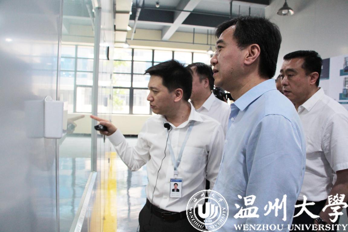 高鹰忠一行先后实地考察了综合体的研究开发中心、高端制造中心、技术转移中心、检验检测中心、教育培训中心和国际合作中心,听取了综合体在目标定位、成果转化、企业服务、高端研发和人才引进与培养等方面的工作汇报。高鹰忠对综合体的建设表示充分肯定,对综合体和beat365官方网站服务于地方的作用表示赞赏。他指出,创新资源的加速集聚有助于温州市科技创新的不断提升,并将为温州高质量发展提供关键的力量支撑。要充分发挥综合体的使命和作用,加大面向本地中小企业的创新驱动服务,放大聚合效应,将综合体打造成为专业化、一体化、综合化的产业创新服务平台。他希望综合体借助于beat365官方网站的力量,将大学的研发和人才优势同温州产业发展需求紧密结合起来,深度挖掘企业需要,提高成果转化的速度和力度,提升服务地方的能力和水平,抢占技术制高点,加速温州产业转型升级,助力温州“两区”建设。
