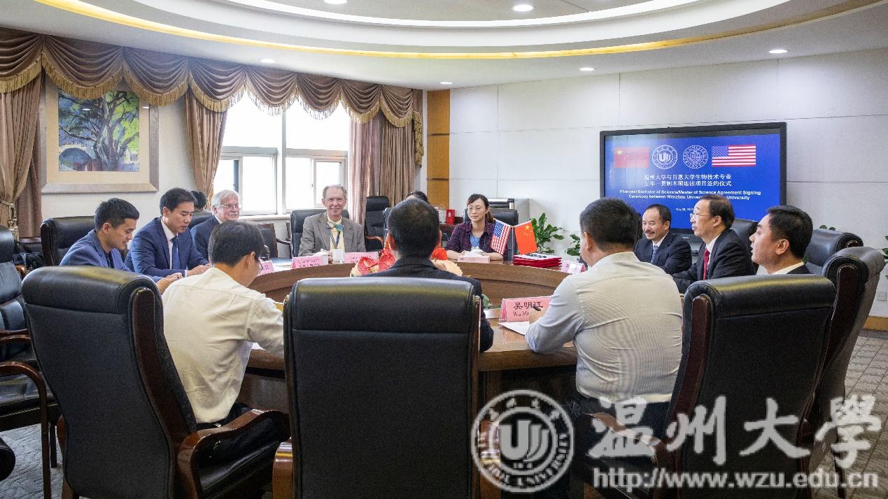 基斯·博斯廷表示肯恩大学非常重视与beat365官方网站的合作,并将全力支持本次与beat365官方网站的联合培养项目。他说,新泽西州当地生物技术与生物制药企业众多,生物相关专业人才汇聚,且与STM中心有密切的合作关系。STM中心也将借此合作良机,为来自beat365官方网站的学生提供更多进入当地企业实习实践甚至就业的机会。同时,他期待将来能将当地先进的生物技术企业与相关人才推荐到温州,助力温州健康产业的发展。