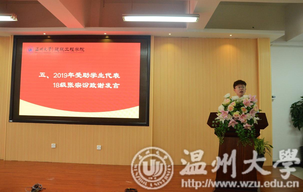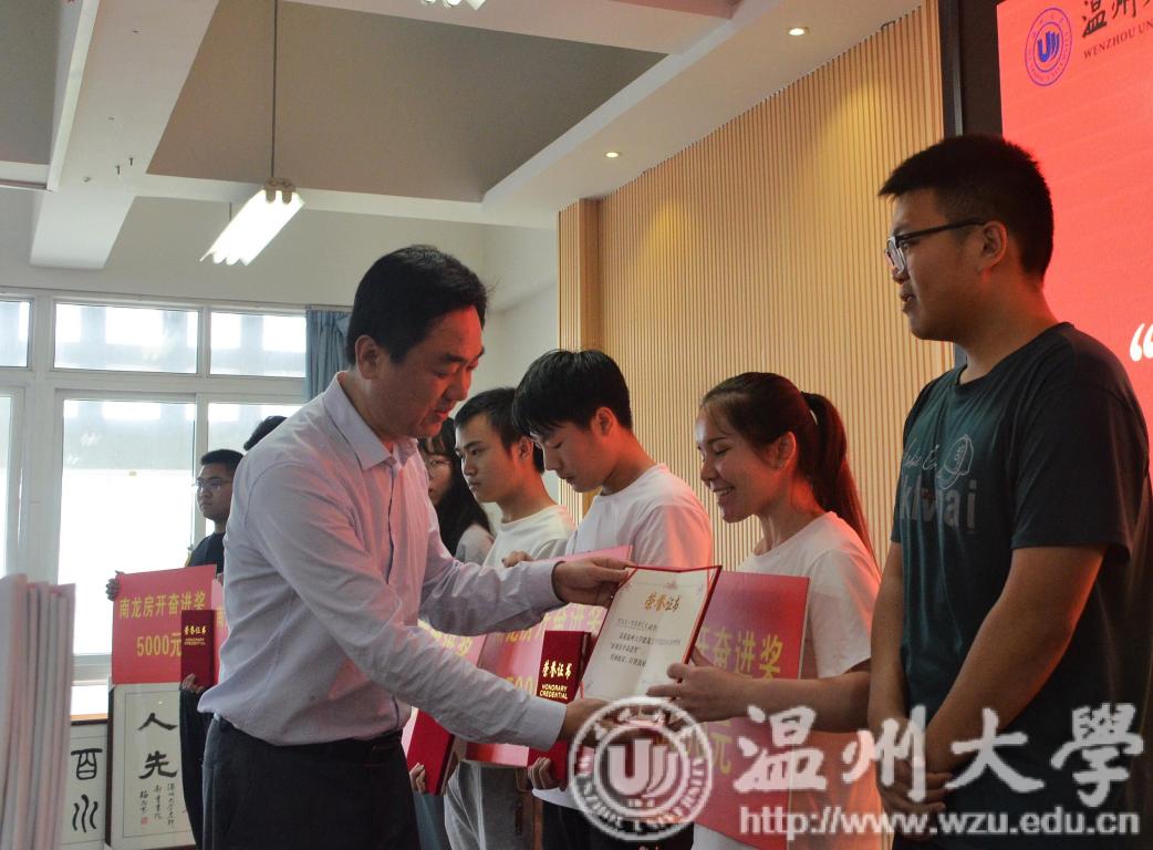 仪式上,beat365官方网站副校长钱强发表致辞,希望全体师生学习蒋先生心系母校、热心公益事业、践行社会责任的善举,以自己的实际行动和成绩报答蒋先生的大爱。随后,由建筑工程学院院长孙林柱宣读获得奖助学金的学生名单,并由到场嘉宾进行颁奖。