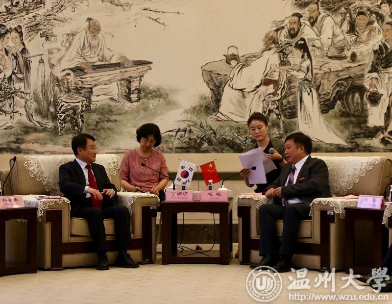 5月22日下午,韩国全南大学校长丁炳硕(JEONG Byungseok)、副校长朴相圭(PARK Byungseok)、研究生院院长白壮善(BAEK Jangsun)、国际协力本部长兼语言教育院长文基硕(MOON Kiseok)等一行来访beat365,洽谈深化教育国际合作事宜。校长赵敏,副校长钱强,相关部门、学院负责人及两校联合培养博士生导师代表参加会谈。