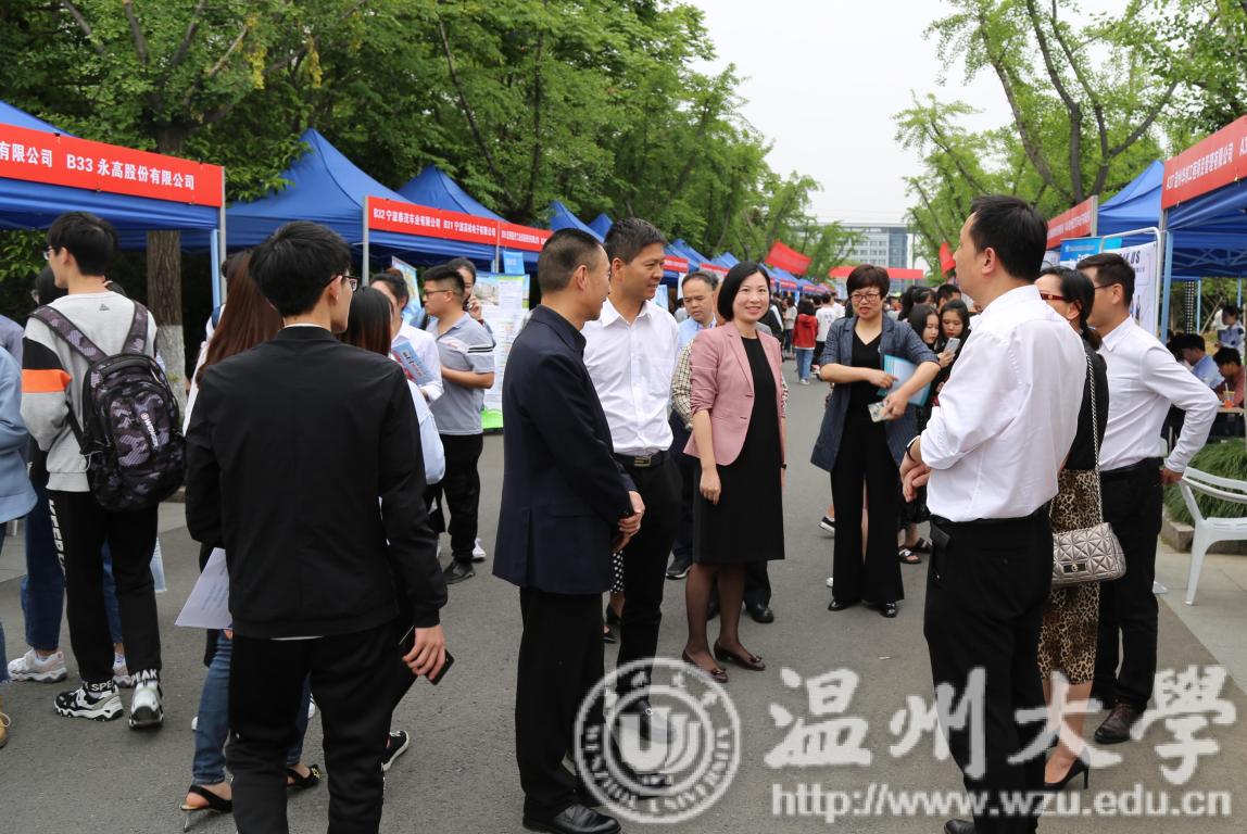 5月11日,beat3652019届毕业生春季供需洽谈会暨2020届毕业生实习实训招聘会在大学生活动中心举行。校党委副书记庄兴忠,温州市人力资源和社会保障局副局长胡正长,温州市妇联副主席曾玲艳、温州市人才管理服务办公室主任季亚斐、瓯海区人力资源和社会保障局副局长姜林海等亲临现场指导。