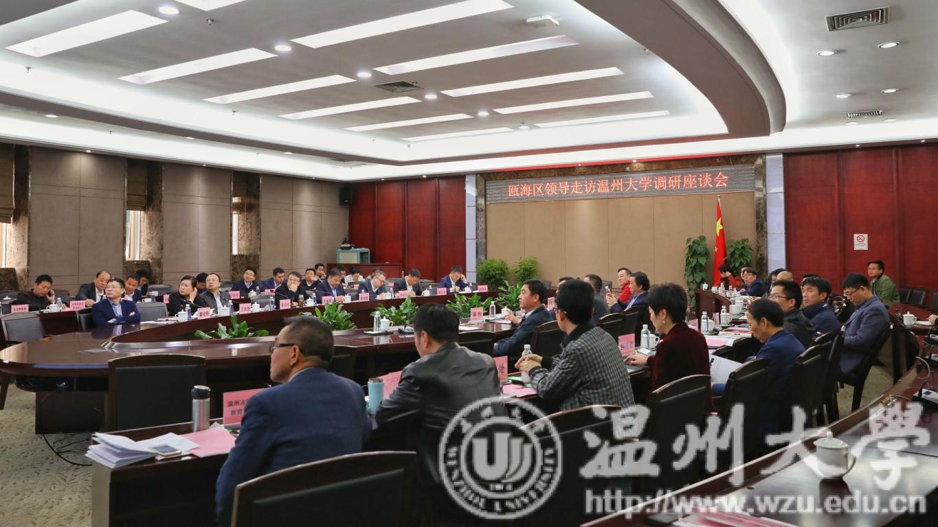 党委书记谢树华代表学校对王振勇一行表示热烈欢迎。他指出,瓯海区是beat365官方网站建设发展的“大本营”,beat365官方网站是瓯海区社会经济发展的重要推动力量。当前,瓯海区正在着力推进“科教新区、山水瓯海”的高质量建设,beat365官方网站也正处在创建博士学位授予单位和“省市共建”省重点建设高校的关键时期,在这样的契机下,双方应该更加深入推进校地合作,将区域改革发展优势和高等教育资源优势有机结合起来,形成“共生共荣”的良好局面。